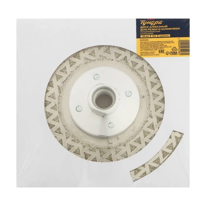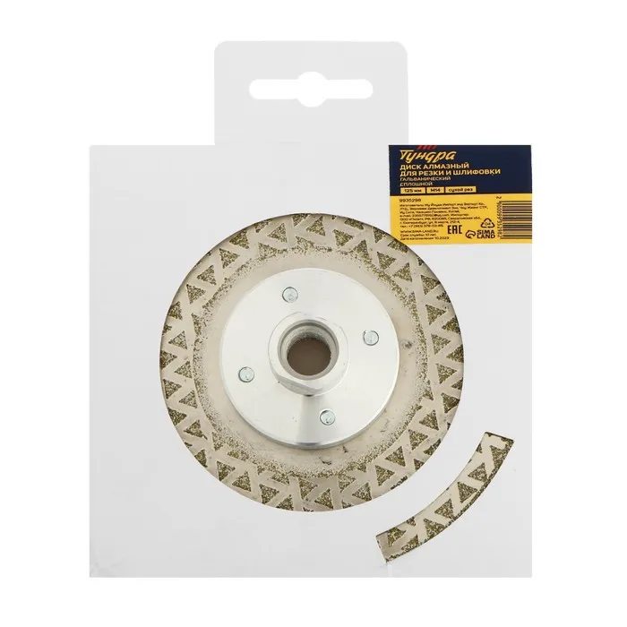 Диск алмазный для резки и шлифовки ТУНДРА, гальванический, сплошной, сухой рез, 125 мм, М14 — Характеристики