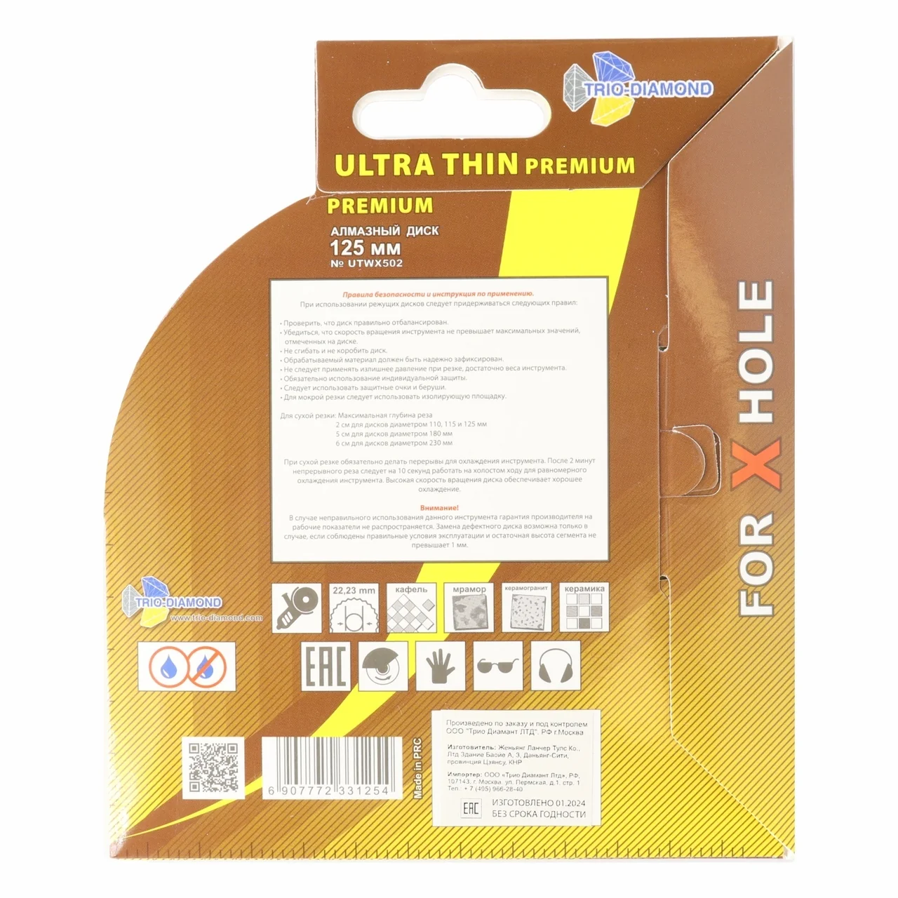 Диск алмазный 125*22,23 мм сплошной ультратонкий для резки с hot press