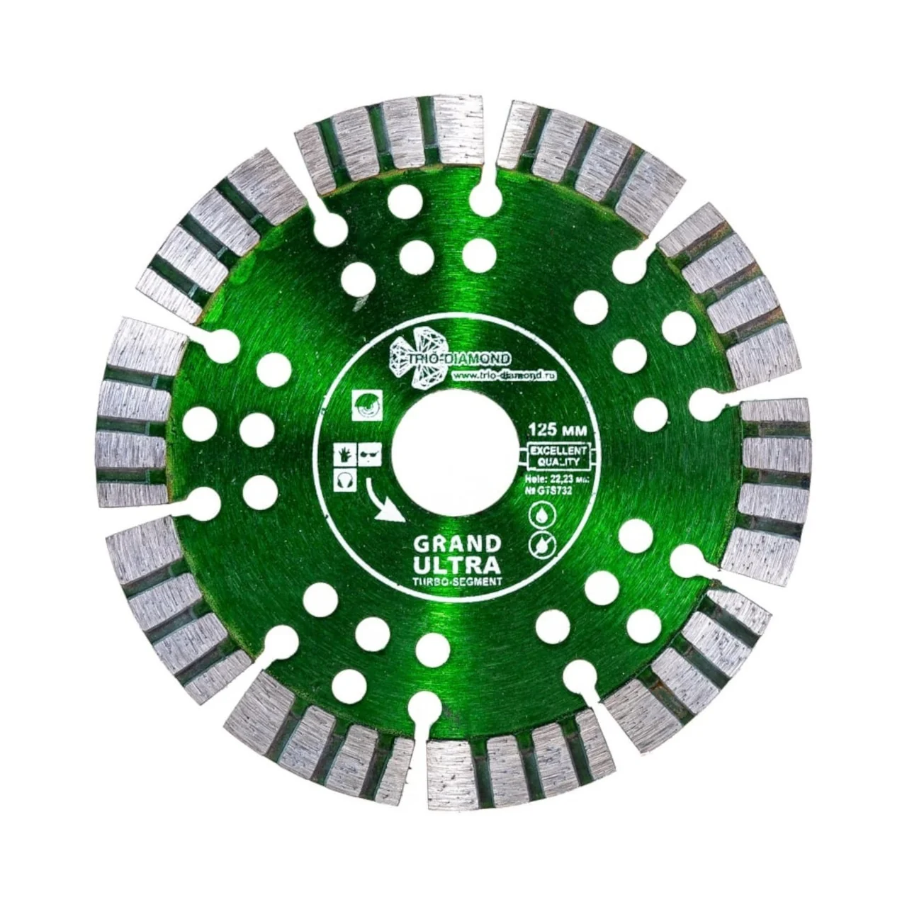 Выберите алмазный диск TRIO-DIAMOND серии Grand Ultra Turbo-Segment, чтобы обеспечить высокую производительность и точность при резке различных материалов. Код товара GTS732.