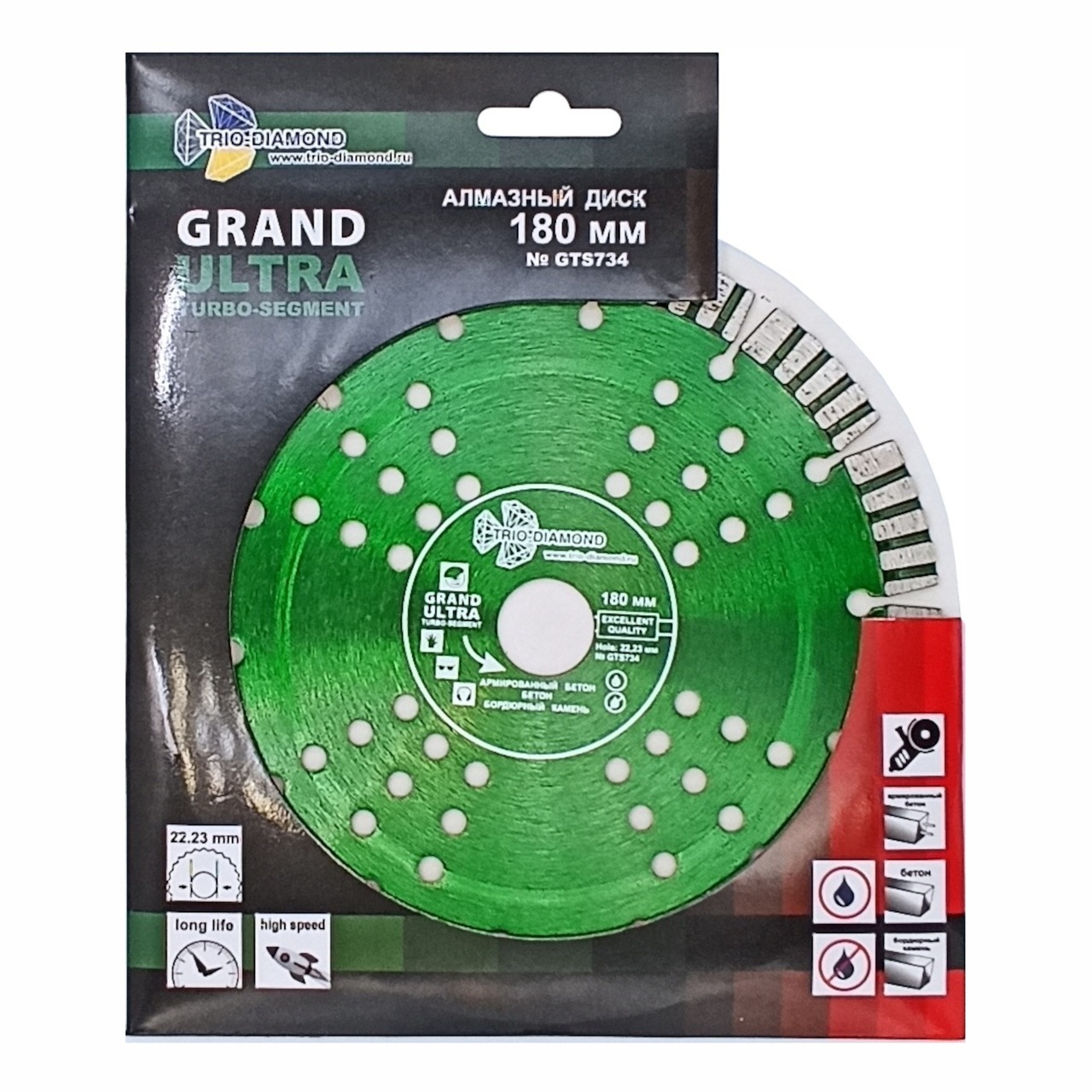 Идеальный инструмент для профессионалов, занимающихся строительством и ремонтными работами. Диск TRIO-DIAMOND серии Grand Ultra Turbo-Segment позволяет эффективно резать армированный бетон, кирпич, камень и другие строительные материалы с помощью углошлифовальной машины (УШМ).