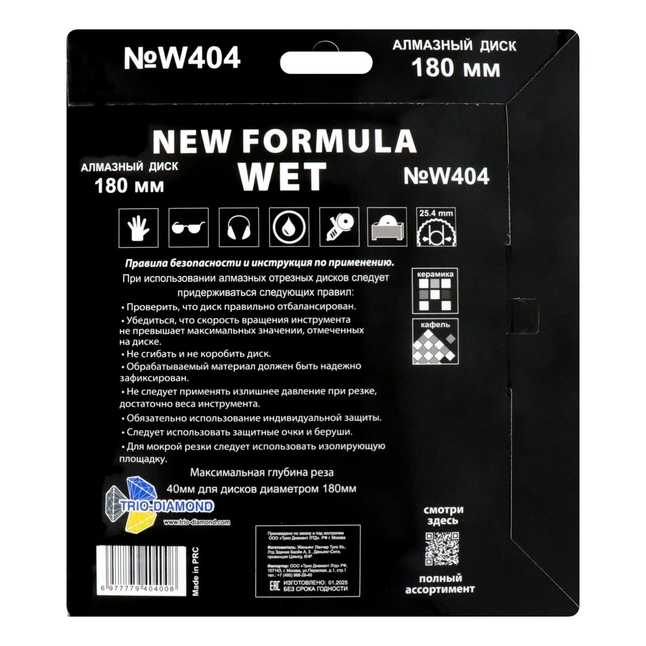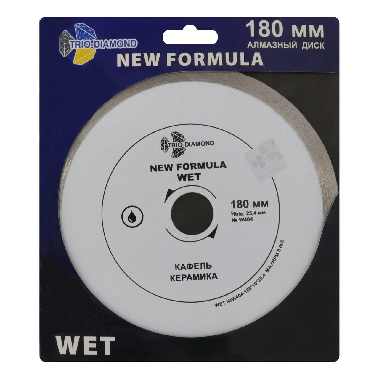 Этот диск изготовлен по технологии холодного прессования, что обеспечивает его высокую прочность и долговечность. С посадочным диаметром 25,4 мм и наружным диаметром 180 мм, он идеально подходит для плиткорезов, работающих на максимальных оборотах до 8600 RPM.