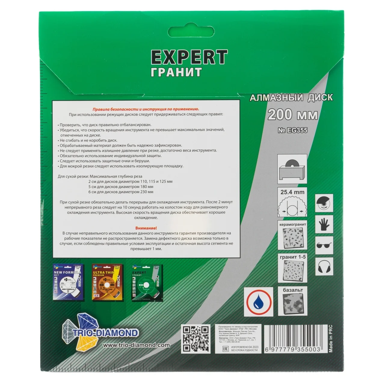Выберите диск алмазный TRIO-DIAMOND EG355, чтобы обеспечить себе точный и надежный рез на профессиональном уровне.