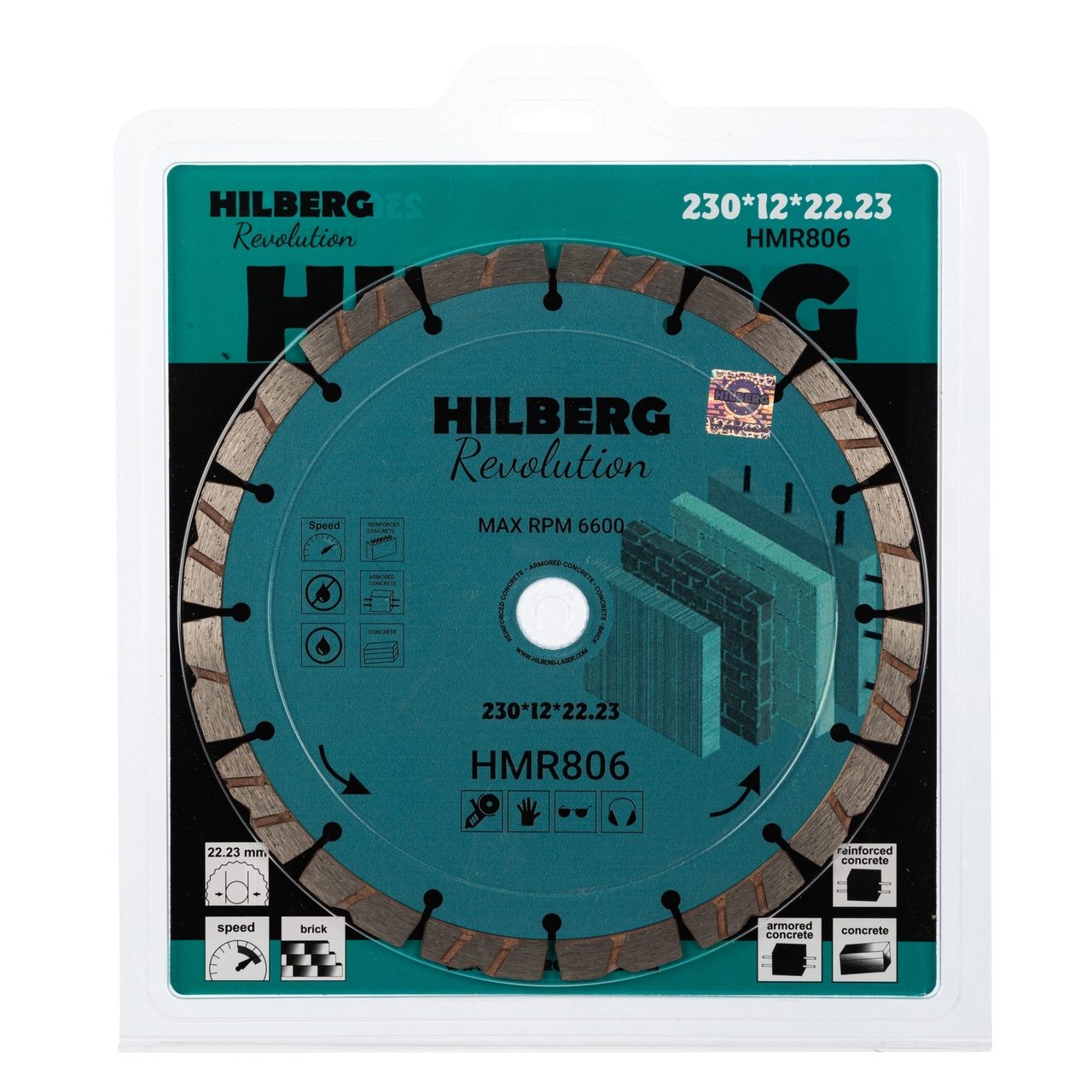 Диск алмазный 230 мм сегментный-турбо Hilberg Revolution HMR806 для резки бетона и камня