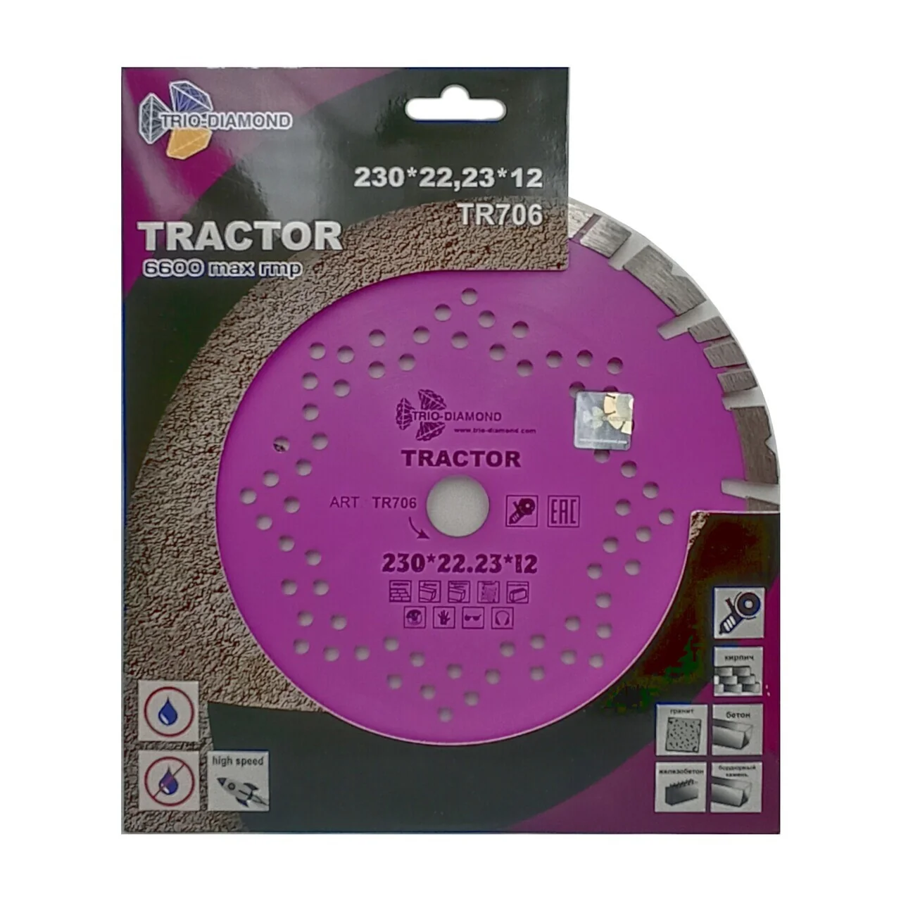 Диск алмазный отрезной серии Tractor TR706 диаметром 230 мм идеально подходит для работы с различными строительными материалами, такими как бетон, кирпич и камень. Незаменим для мастеров и прорабов, занимающихся резкой тротуарной плитки и бордюрных камней.