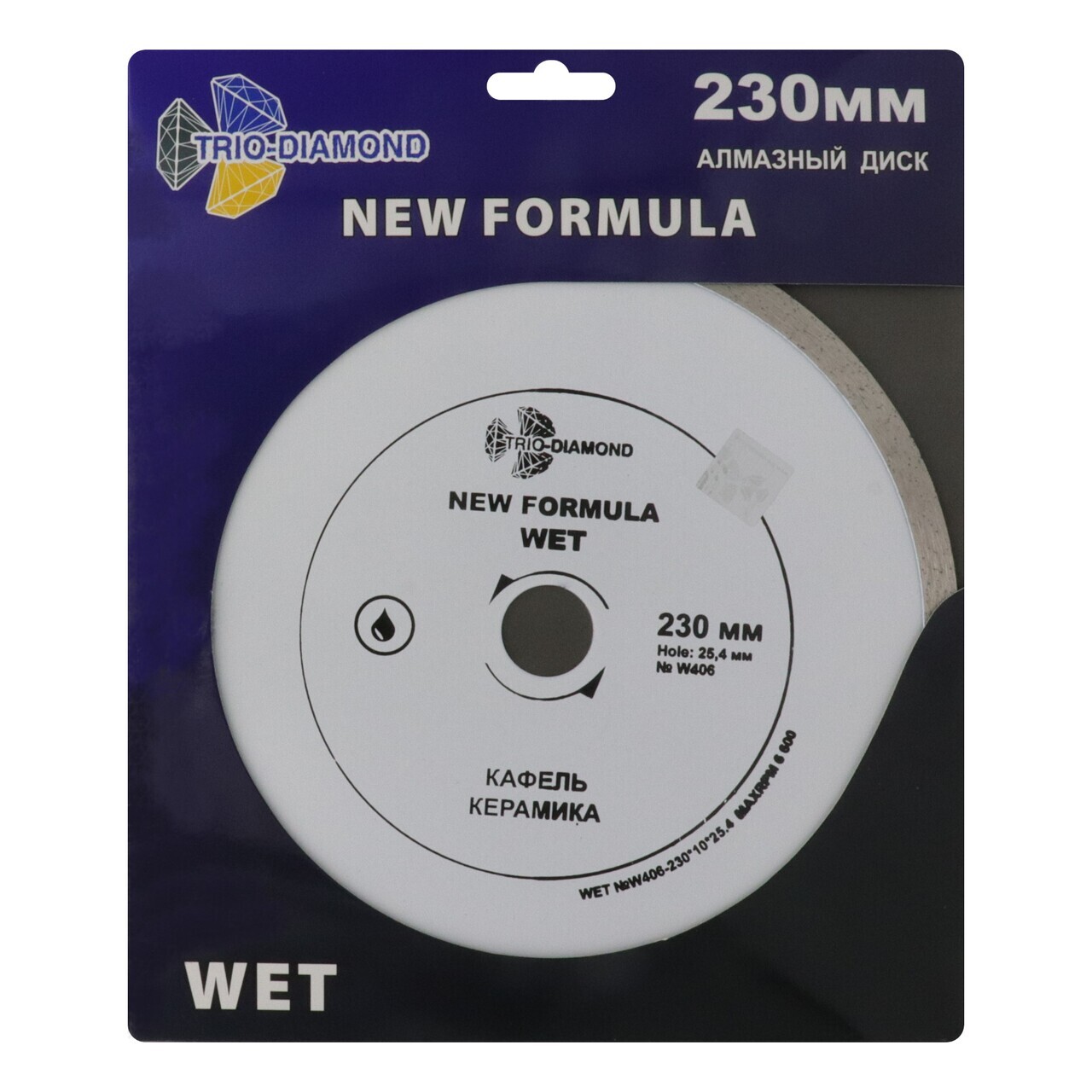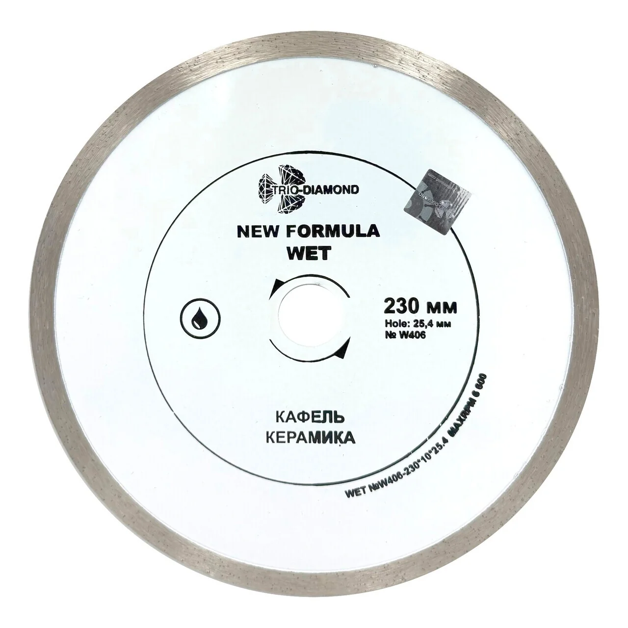 TRIO-DIAMOND W406 — это сплошной диск, предназначенный для мокрого реза, что исключает перегрев и увеличивает срок службы инструмента. Максимальные обороты до 6600 RPM обеспечивают высокую производительность и скорость работы.