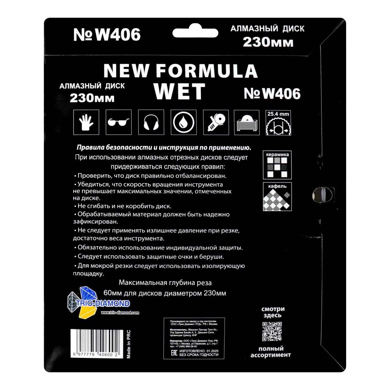 Выберите диск алмазный отрезной TRIO-DIAMOND W406, чтобы обеспечить себе надежное и долговечное решение для мокрого реза различных материалов.