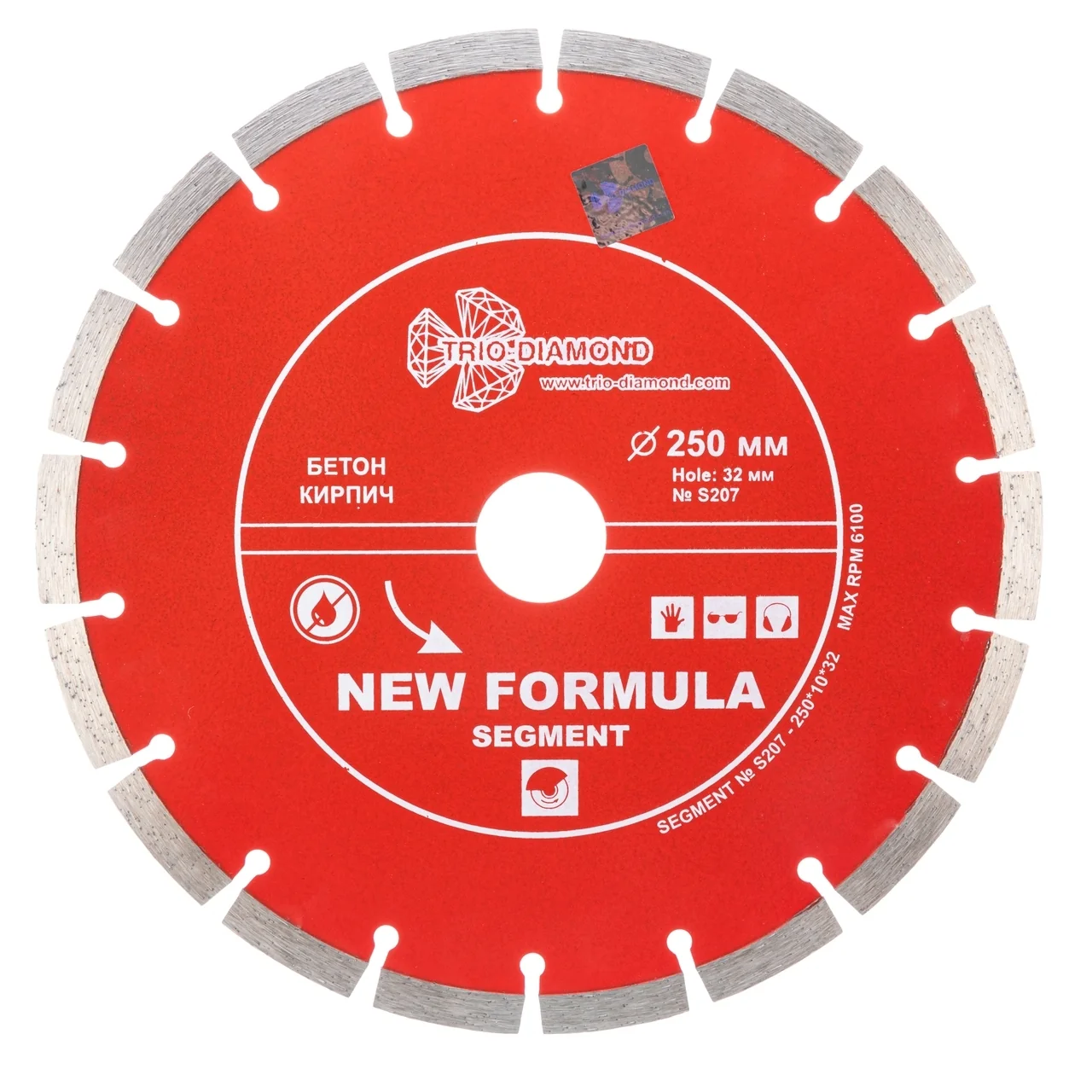 Этот алмазный диск имеет наружный диаметр 250 мм и посадочный диаметр 32 мм, что делает его универсальным инструментом для различных материалов. Сегментная режущая кромка высотой 10 мм и толщиной 2.9 мм позволяет производить глубокий рез до 60 мм.