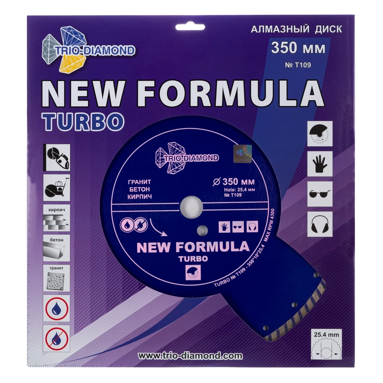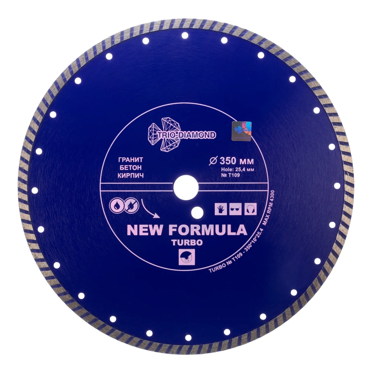 Диск обладает турбо-кромкой, оптимизированной для высокой скорости вращения до 4 300 оборотов в минуту. Высота режущей кромки 10 мм и технология холодного прессования обеспечивают надежность и долговечность при сухой и мокрой резке.