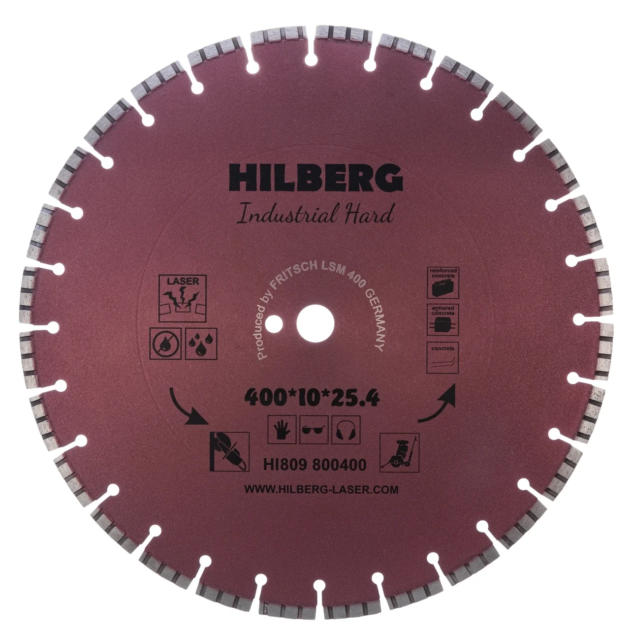 Диск алмазный отрезной HILBERG HI809 диаметром 400 мм — незаменимый инструмент для профессионалов при выполнении резки в сложных условиях. Он идеально подходит для резки сильно армированного бетона, обычного бетона и камня, что делает его идеальным выбором для строительных и ремонтных работ.