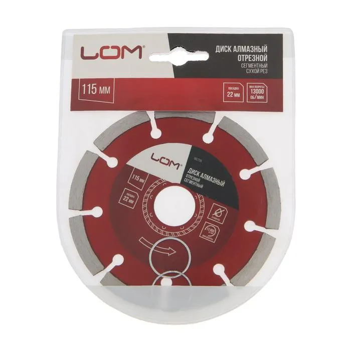 Диск алмазный отрезной ЛОМ, сегментный, сухой рез, 115×22 мм — Характеристики