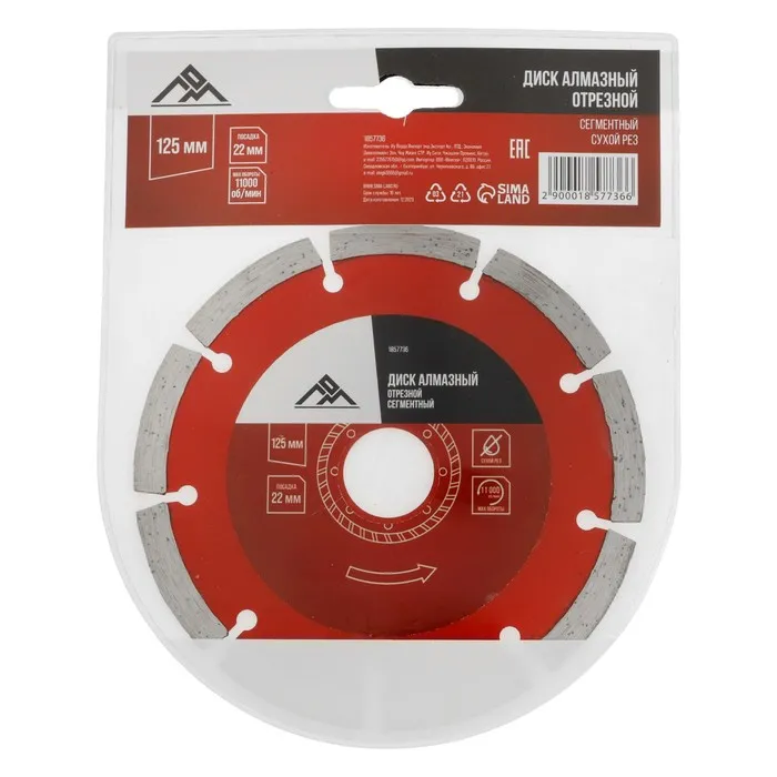Диск алмазный отрезной ЛОМ, сегментный, сухой рез, 125×22 мм — Характеристики