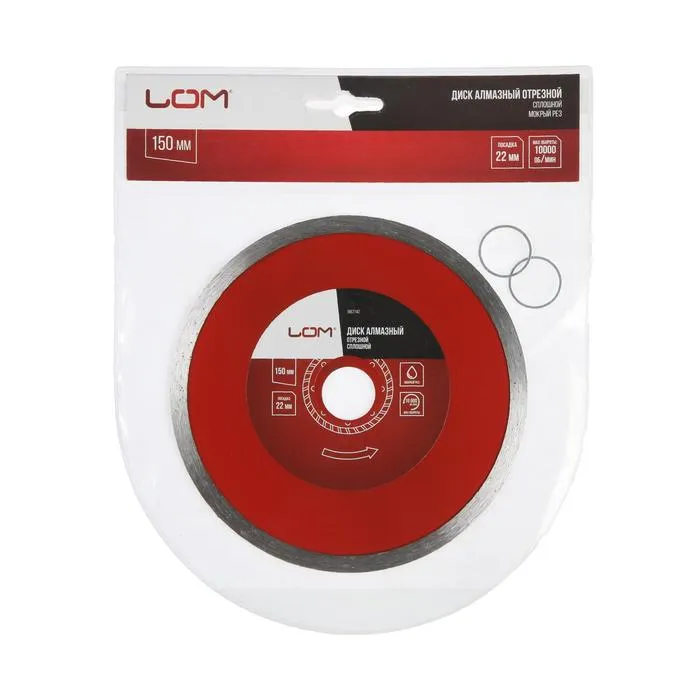 Диск алмазный отрезной ЛОМ, сплошной, мокрый рез, 150×22 мм — Характеристики