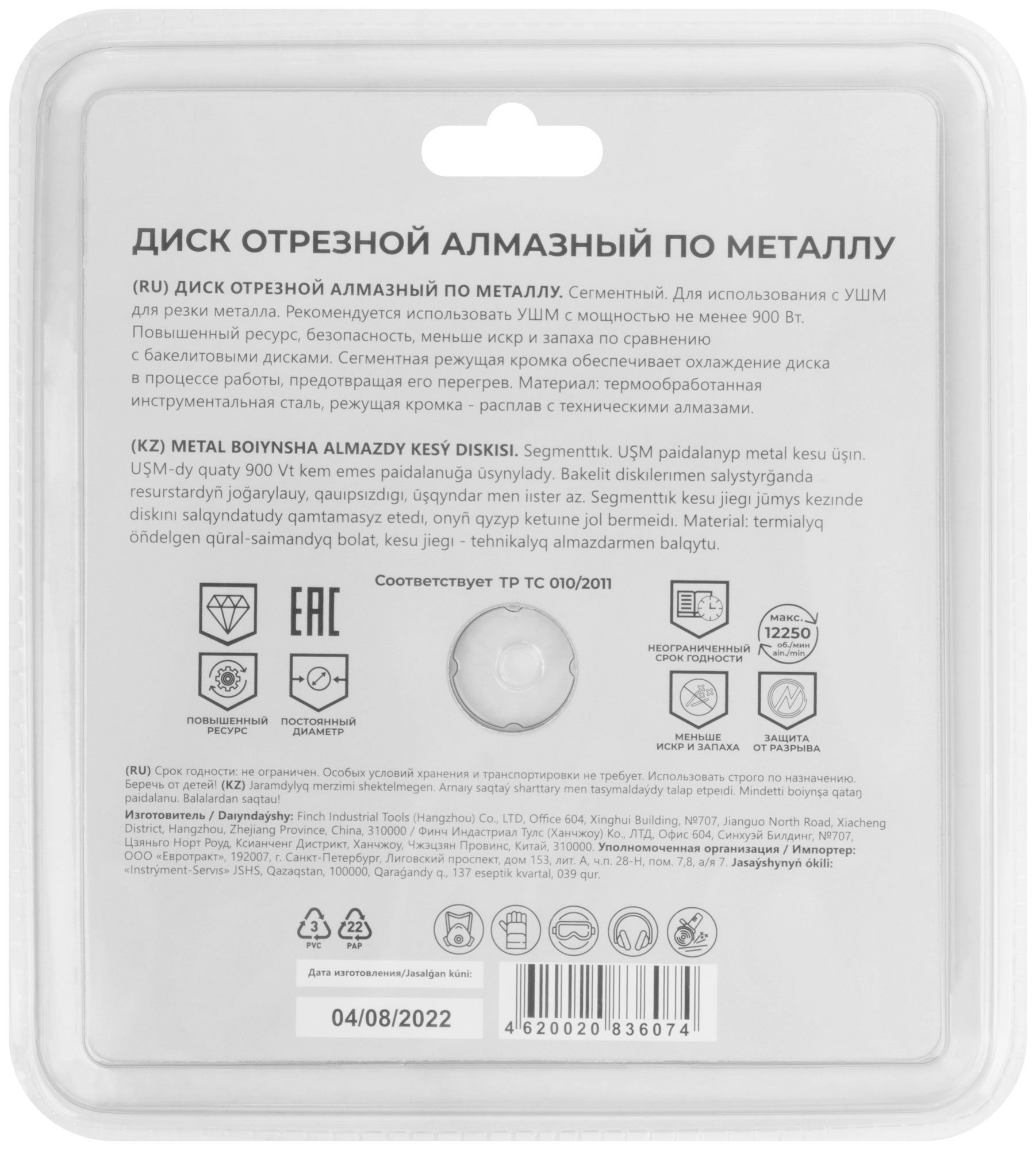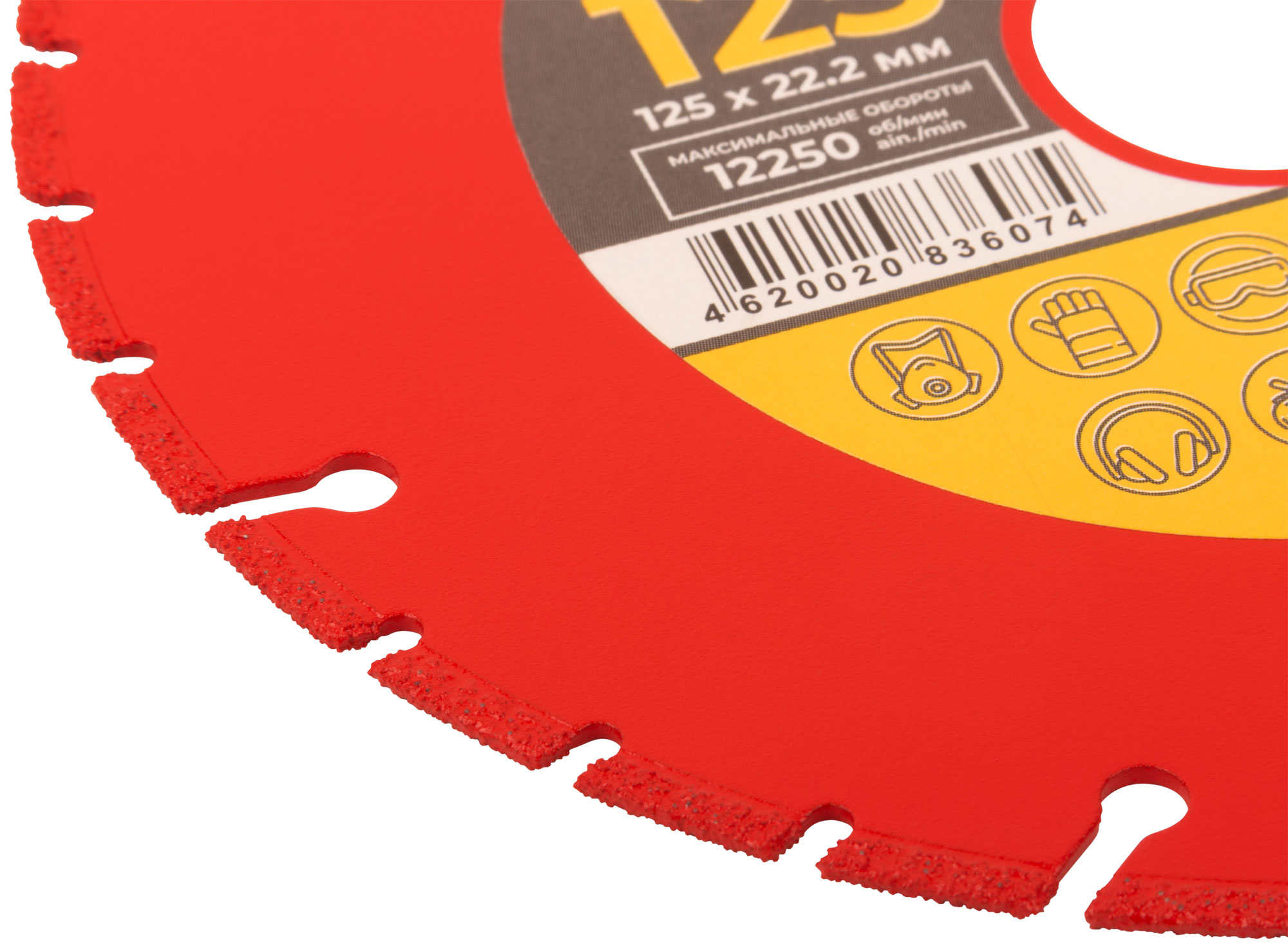 Сегментная режущая кромка обеспечивает эффективное охлаждение и предотвращает перегрев, что значительно увеличивает срок службы диска. Диск изготовлен из инструментальной стали с добавлением технических алмазов, что повышает его износостойкость.