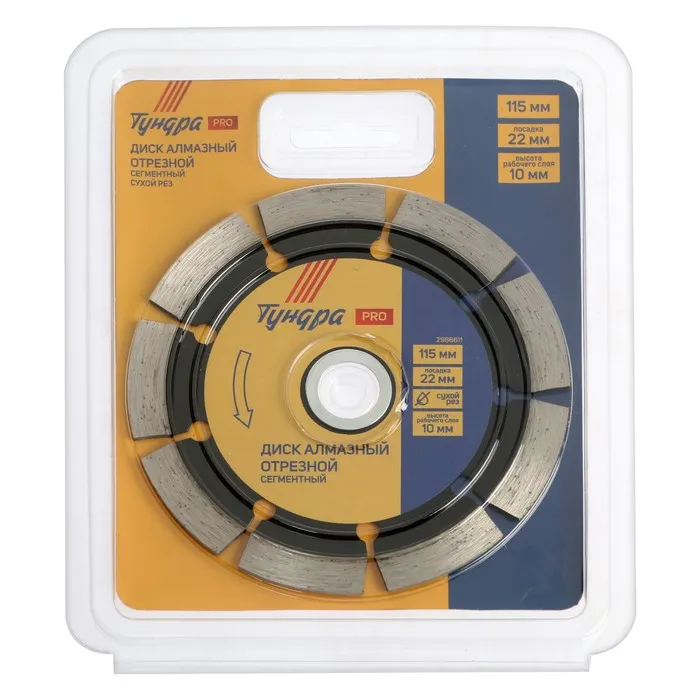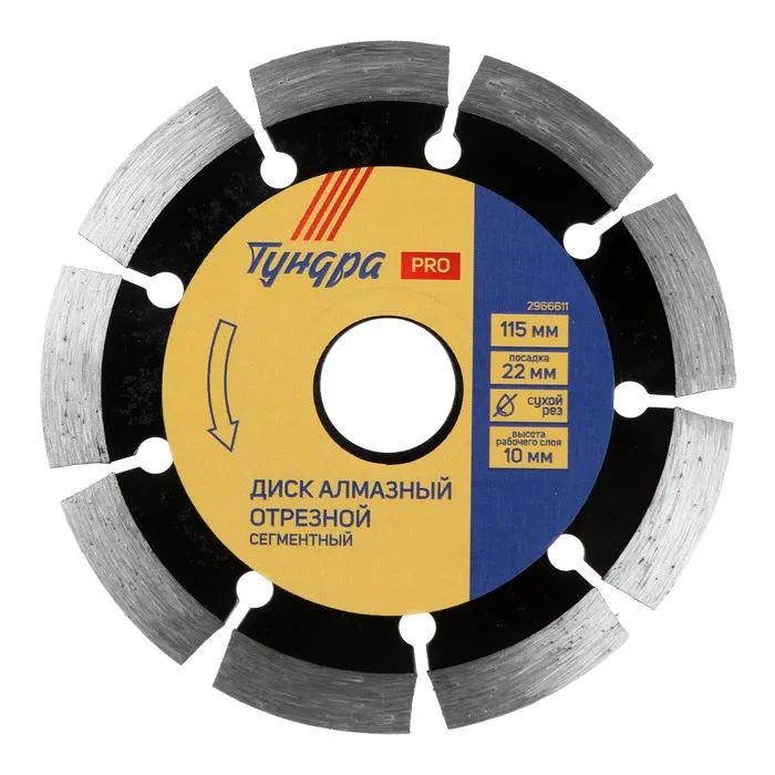 Диск алмазный отрезной ТУНДРА ПРОФИ, повышенный ресурс, сегментный, сухой рез, 115×22 мм — Характеристики