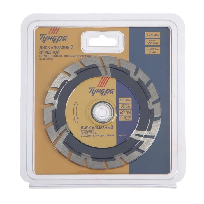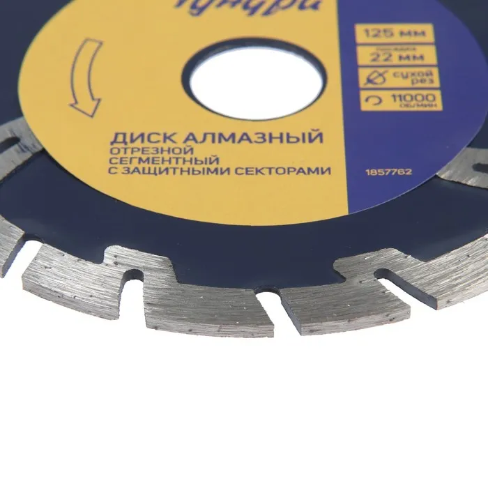 Диск алмазный отрезной ТУНДРА, сегментный с защитными секторами, сухой рез, 125×22 мм — Характеристики