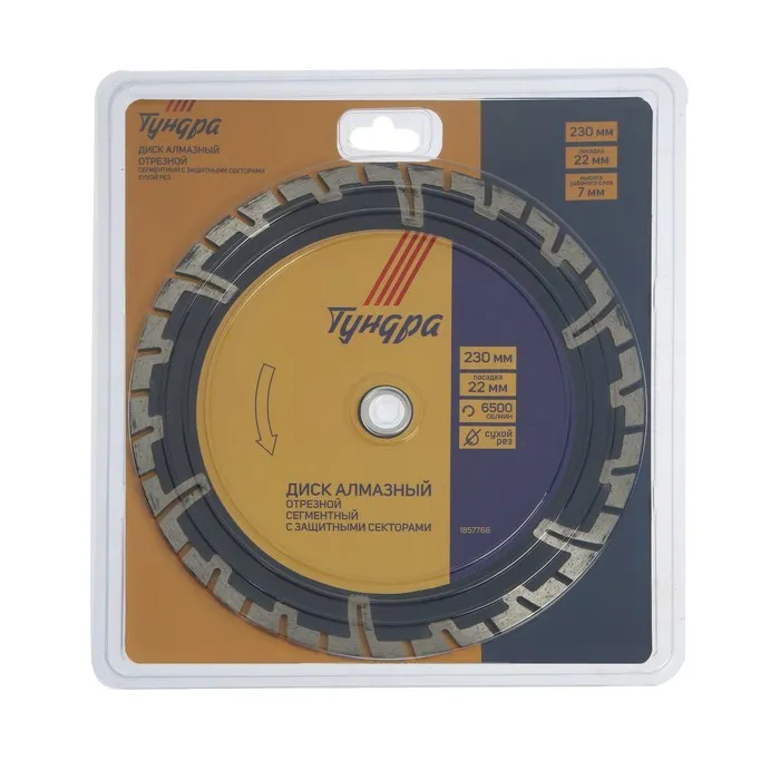 Диск алмазный отрезной ТУНДРА, сегментный с защитными секторами, сухой рез, 230×22 мм — Характеристики