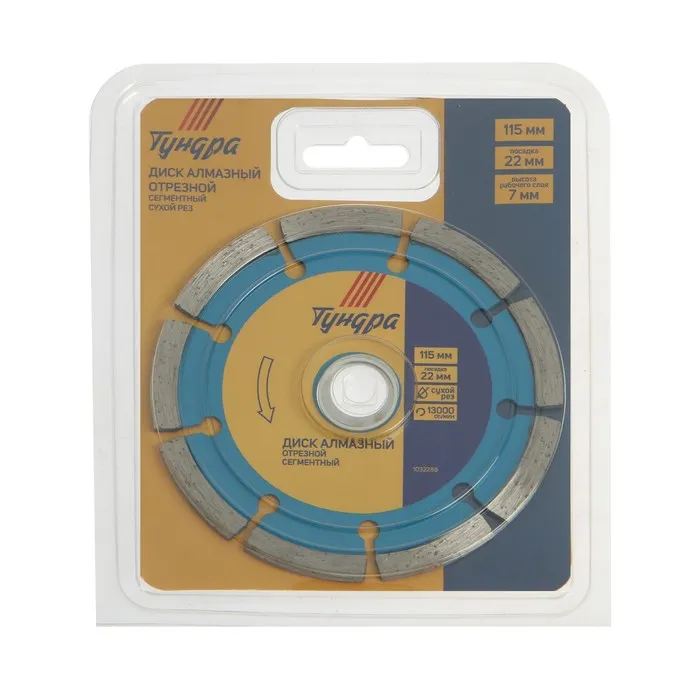 Диск алмазный отрезной ТУНДРА, сегментный, сухой рез, 115×22 мм — Характеристики