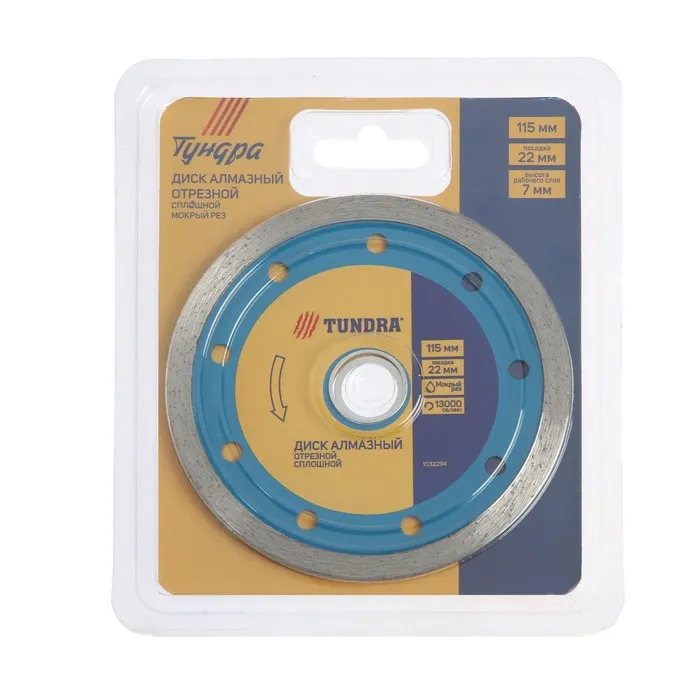 Диск алмазный отрезной ТУНДРА, сплошной, мокрый рез, 115×22 мм — Характеристики