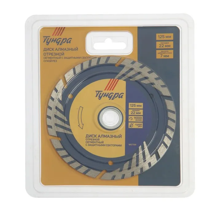 Диск алмазный отрезной ТУНДРА, TURBO-сегмент с защитными секторами, сухой рез, 125×22 мм — Характеристики