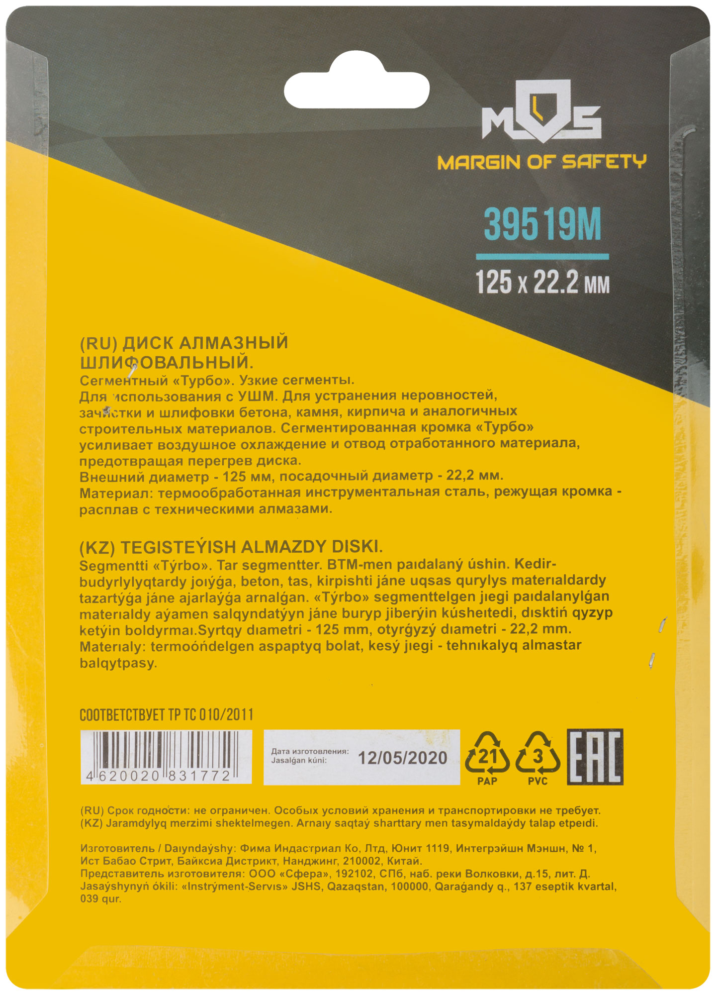 Выберите диск MOS 39519М для своих строительных и ремонтных задач, чтобы обеспечить надежную и качественную обработку материалов.