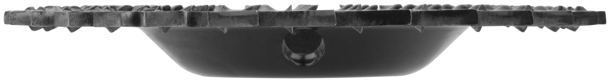 Диск выполнен из инструментальной стали и оснащен грубой насечкой рашпильного типа. Насечки расположены в двух плоскостях, что повышает удобство и эффективность обработки сложных поверхностей.