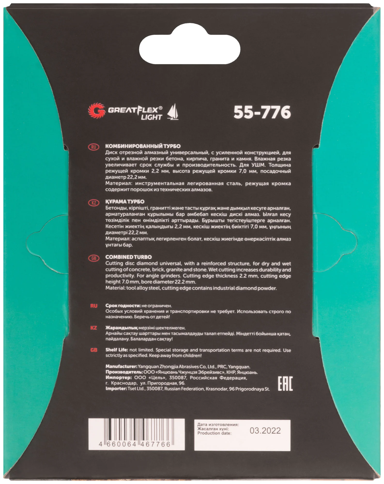 Преимущества этого диска включают в себя усиленную конструкцию, которая снижает вибрацию и повышает точность резки. Комбинированный турбо-дизайн способствует быстрому отводу тепла, что защищает инструмент от перегрева.