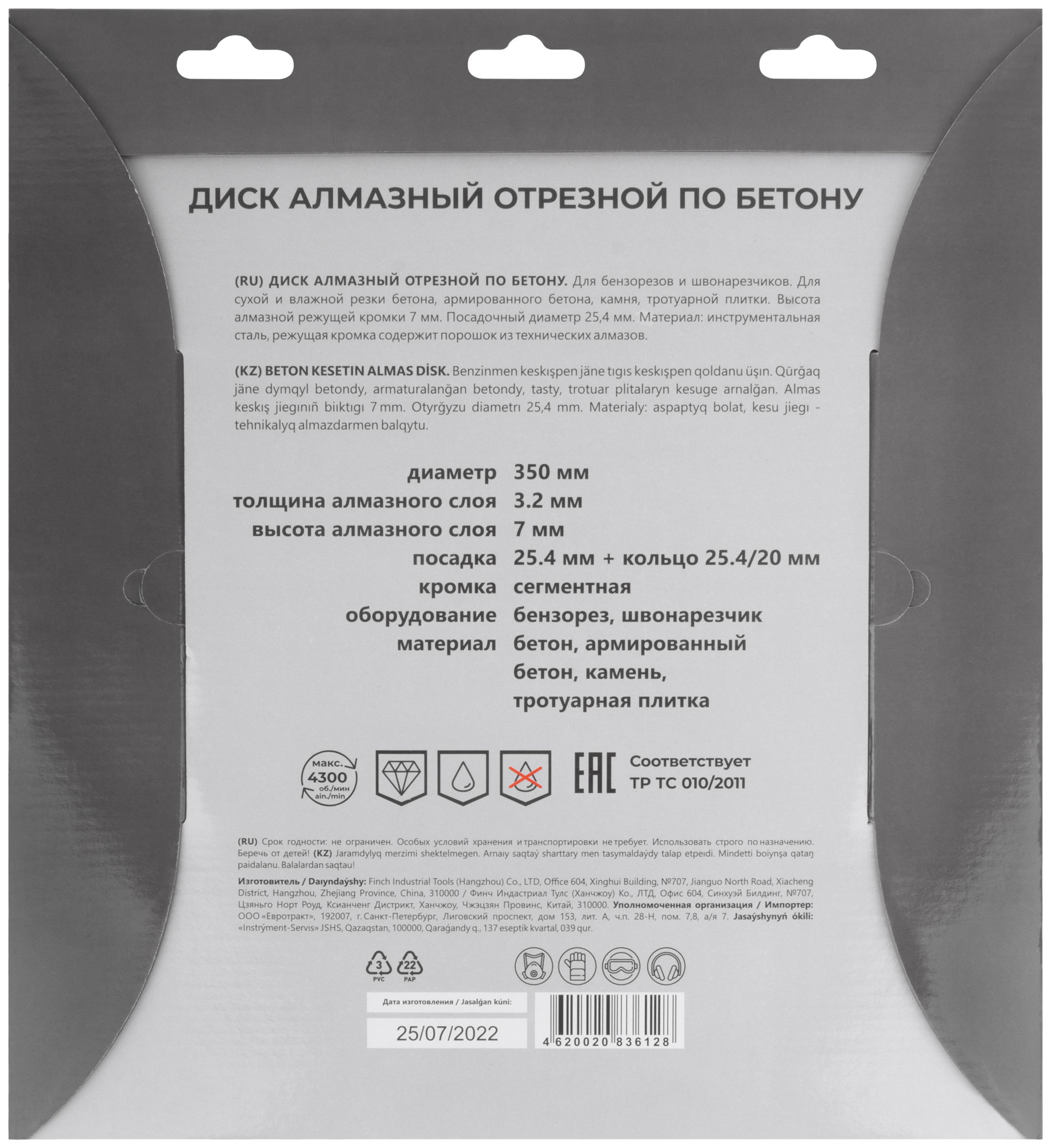 - 1 диск алмазный отрезной MOS 350 х 3.2 х 7 х 25.4 мм