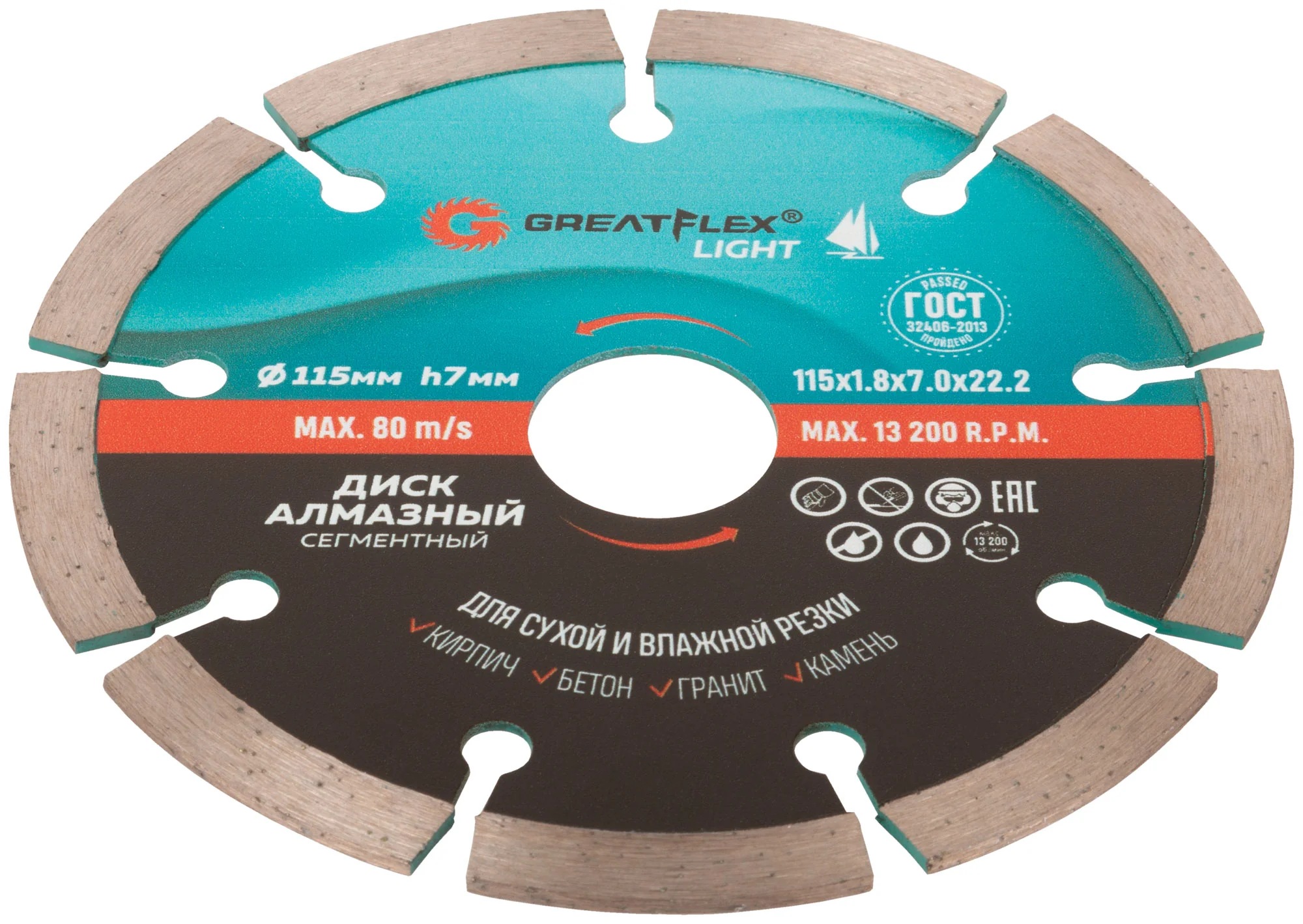 Этот сегментный алмазный диск GreatFlex Light диаметром 115 мм идеально подходит для сухой и влажной резки бетона, кирпича, гранита и камня. Рабочие, использующие его, смогут с легкостью выполнять точные и аккуратные резы, что делает его незаменимым инструментом на строительной площадке.