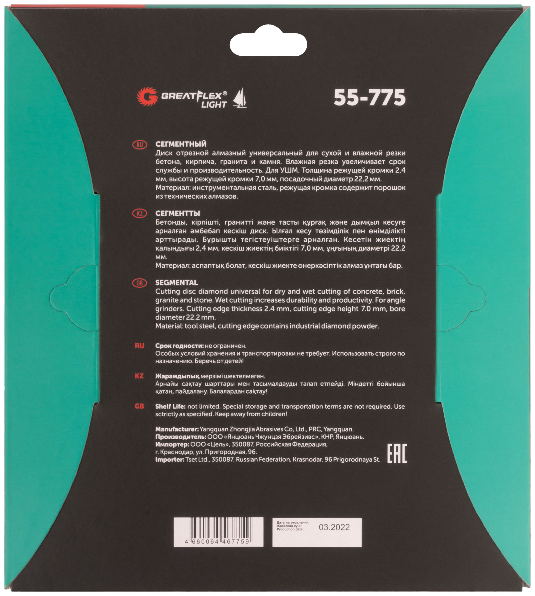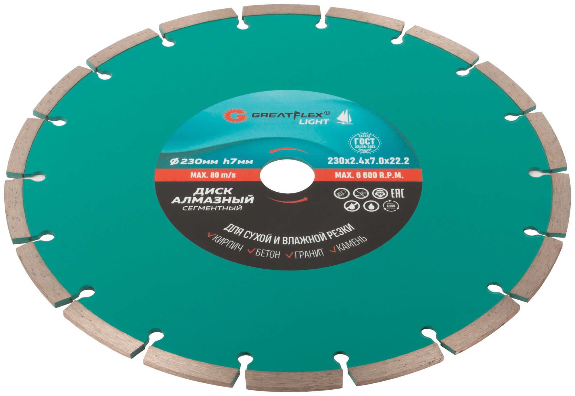 Диск GreatFlex Light изготовлен из инструментальной стали с добавлением тех. алмазов, что обеспечивает высокую прочность и долговечность. Высота алмазных сегментов составляет 7 мм, что гарантирует эффективное и быстрое выполнение задач.