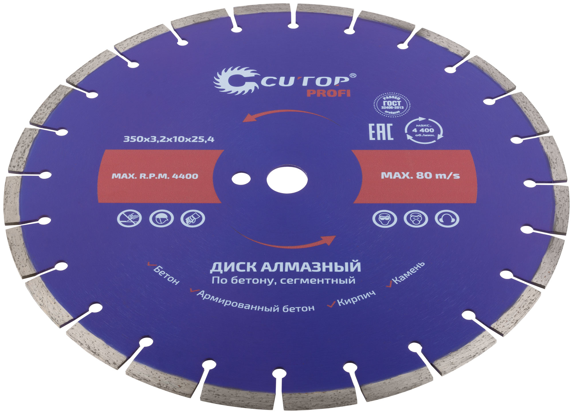 Диск отрезной алмазный сегментный, по бетону CUTOP Profi, 350 x 3.2 x 10 x 25.4 мм