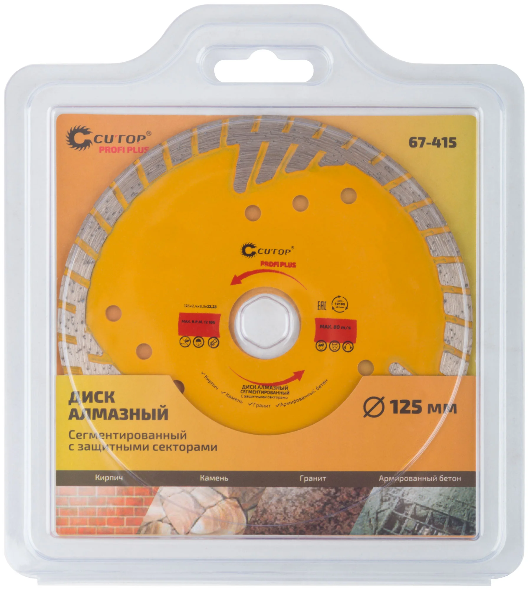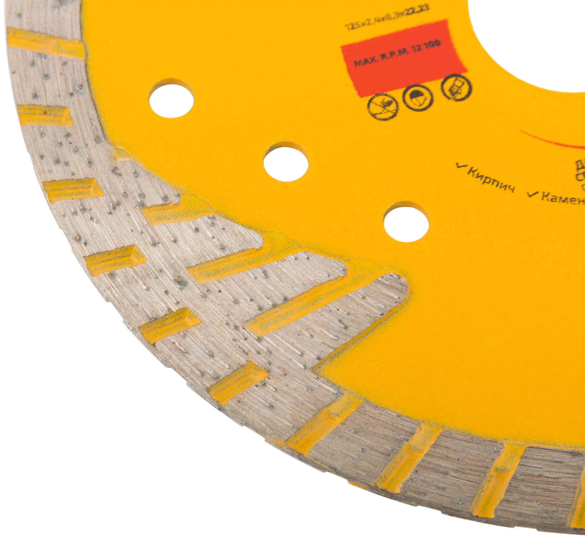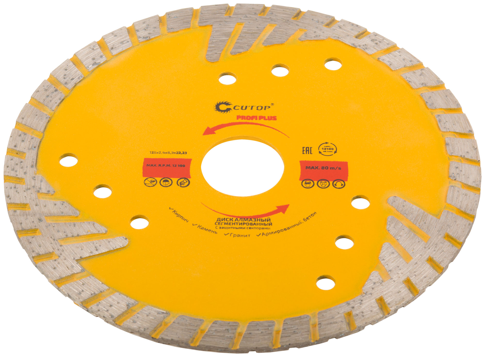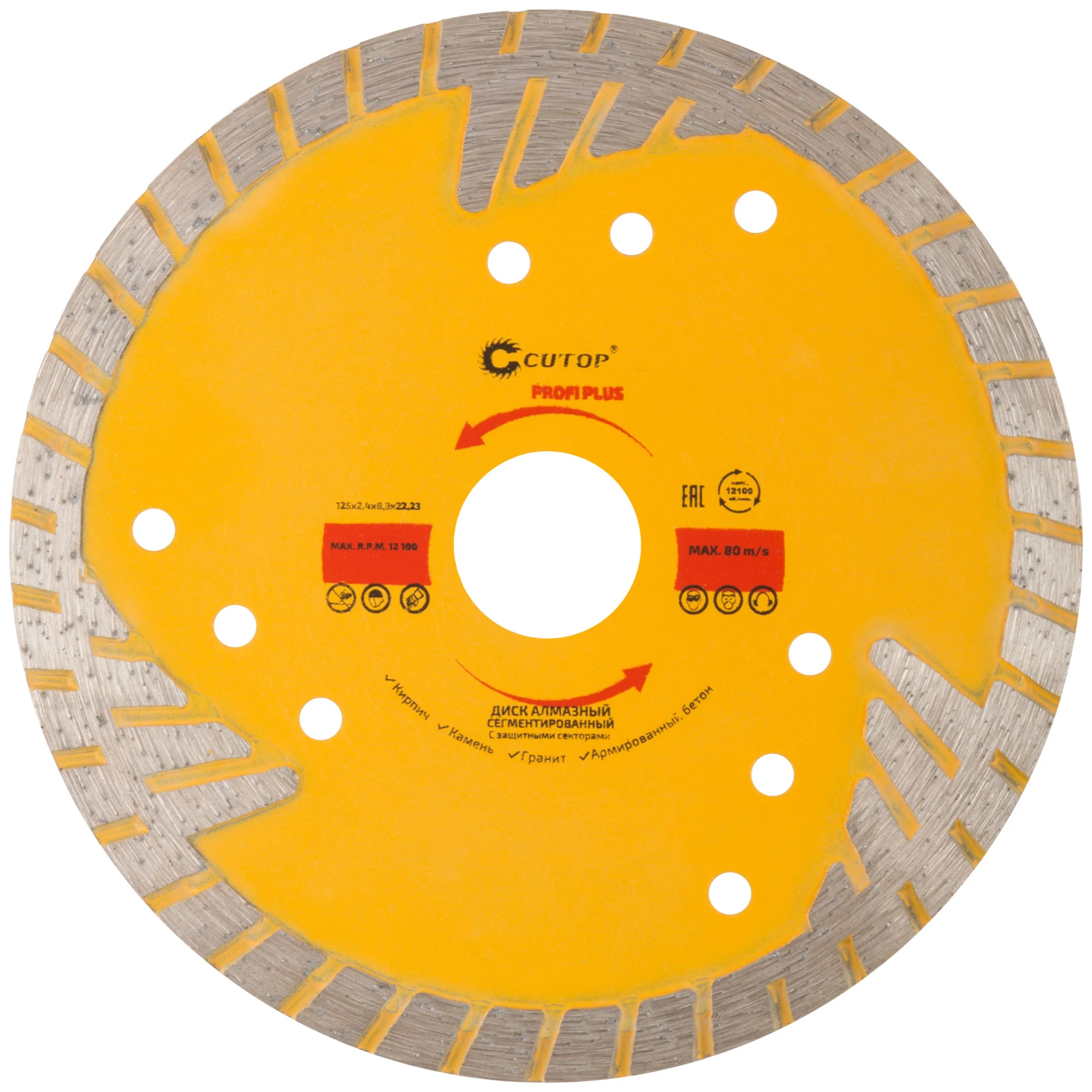 Идеален для резки армированного бетона, керамической плитки, гранита, кирпича и камня. Защитные сектора обеспечивают долговечность и минимизируют боковой износ, что делает его незаменимым в условиях интенсивной эксплуатации.
