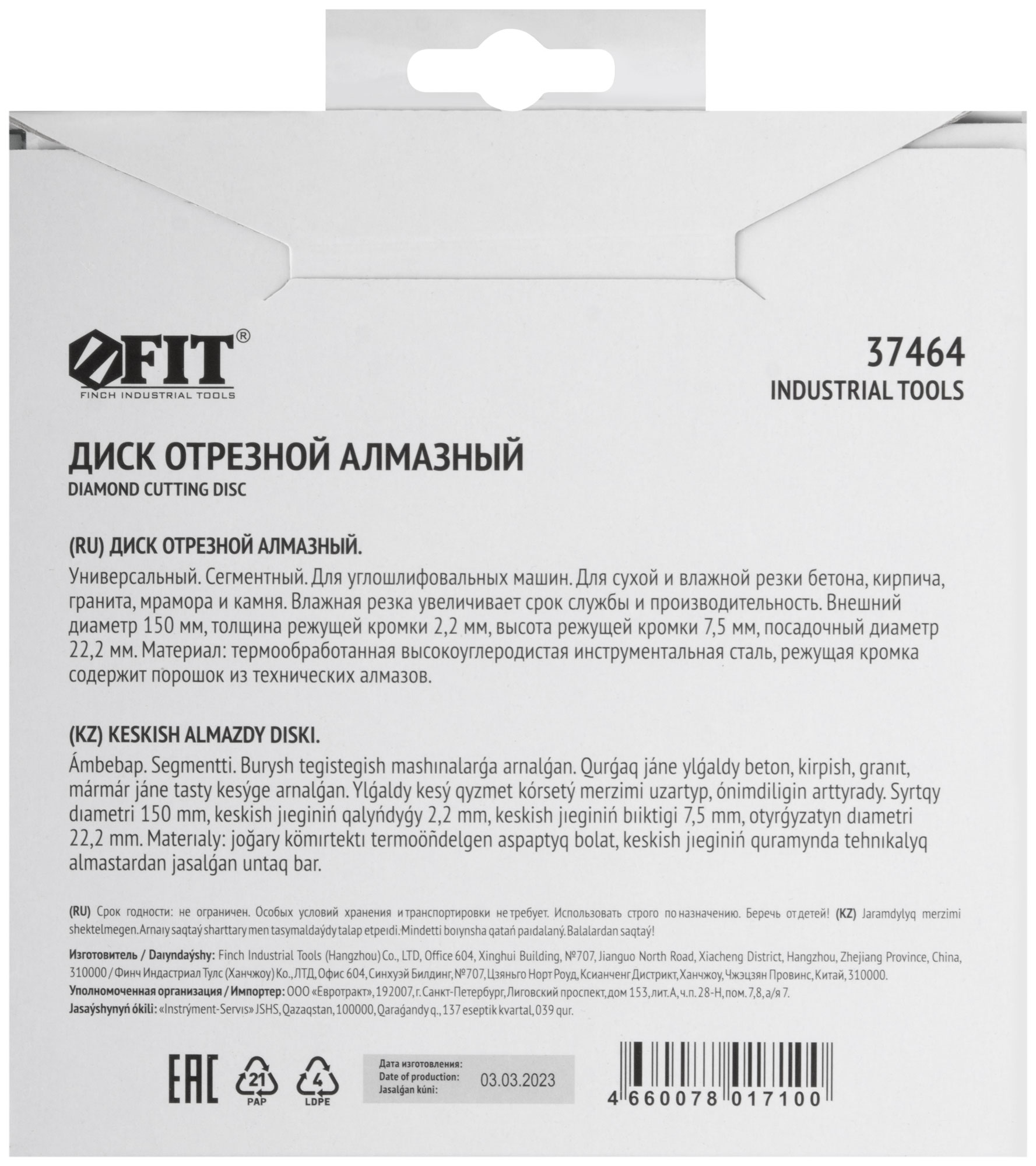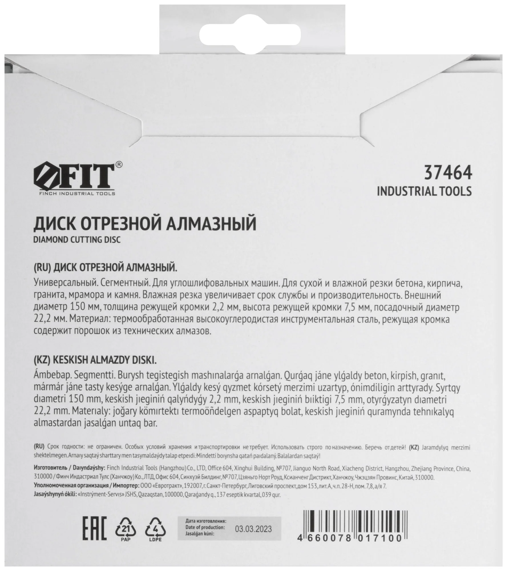 Выберите диск FIT 37464, чтобы обеспечить качественную и быструю резку в любых строительных условиях.
