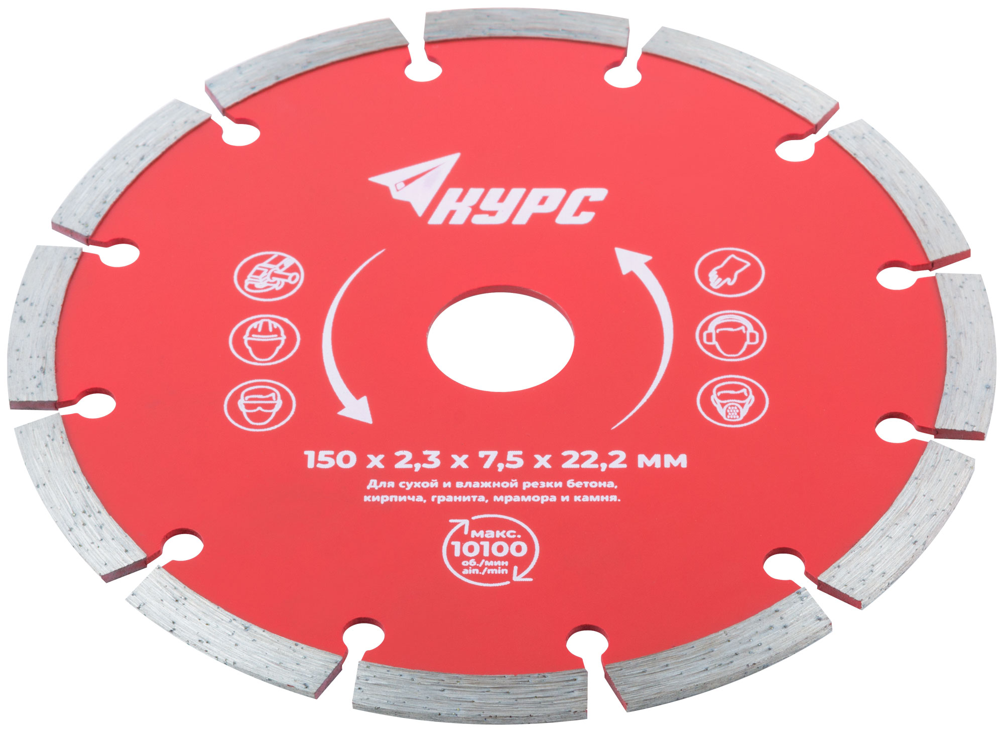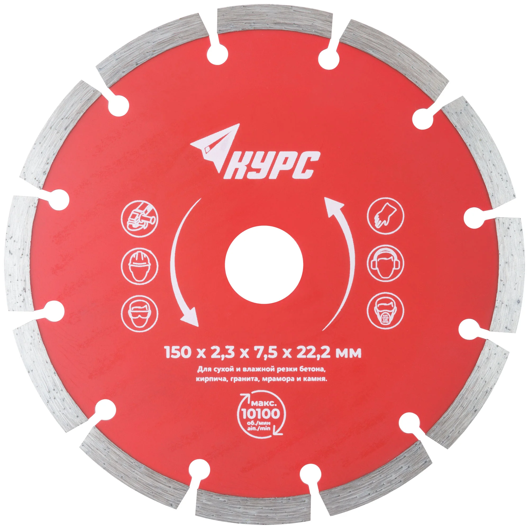 Сегментный. Универсальный. Для сухой и влажной резки бетона, кирпича, гранита, мрамора и камня. Высота алмазной режущей кромки 7 мм. Посадочный диаметр 22,2 мм. Материал: инструментальная сталь, режущая кромка содержит порошок из технических алмазов. Упаковка: картонный конверт.