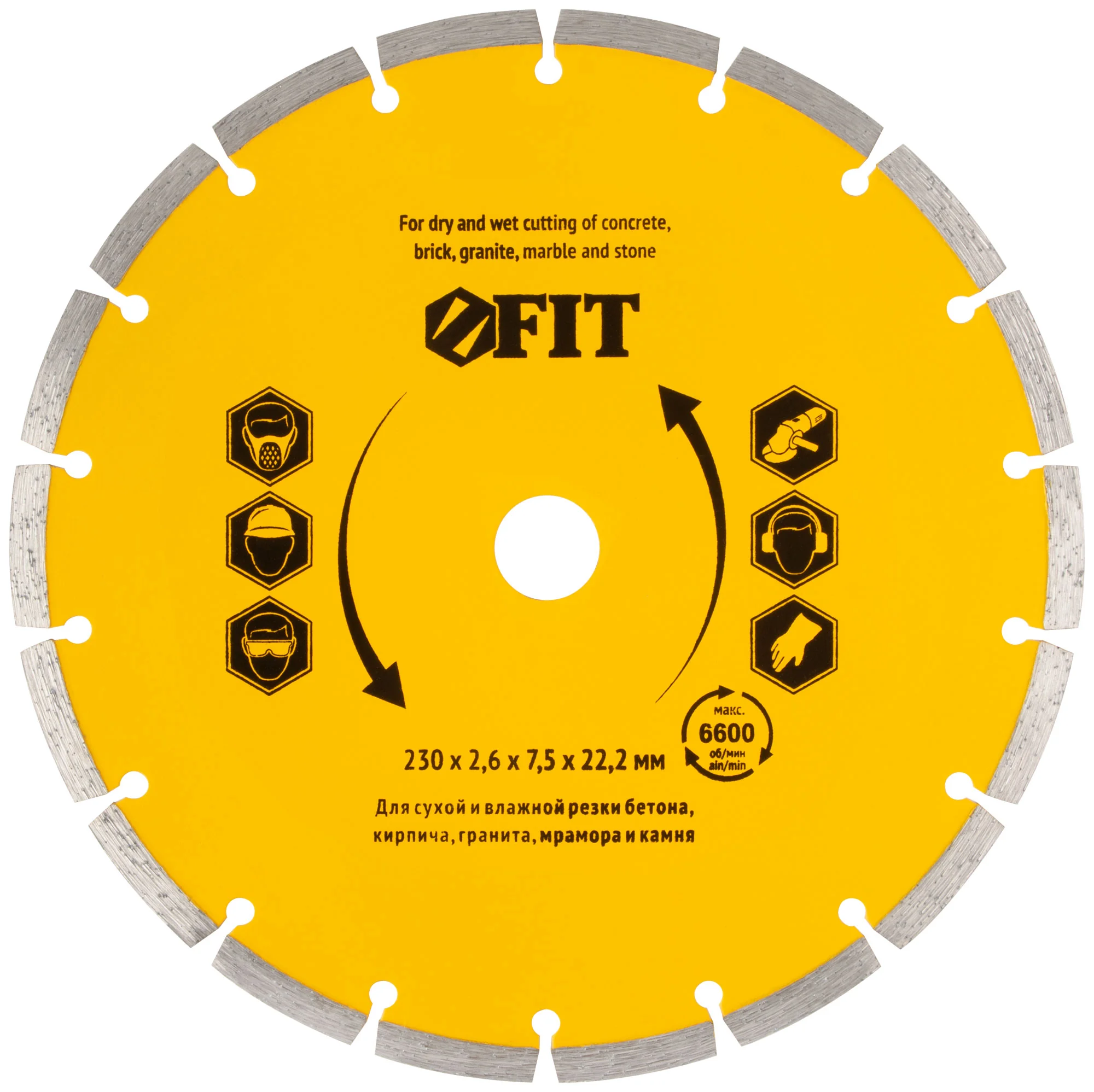 Этот диск от FIT идеально подходит для резки бетона, кирпича, гранита, мрамора и камня, обеспечивая точность и скорость как при сухой, так и при влажной резке. Незаменим в строительстве и ремонте, где требуется высокая производительность и качество реза.