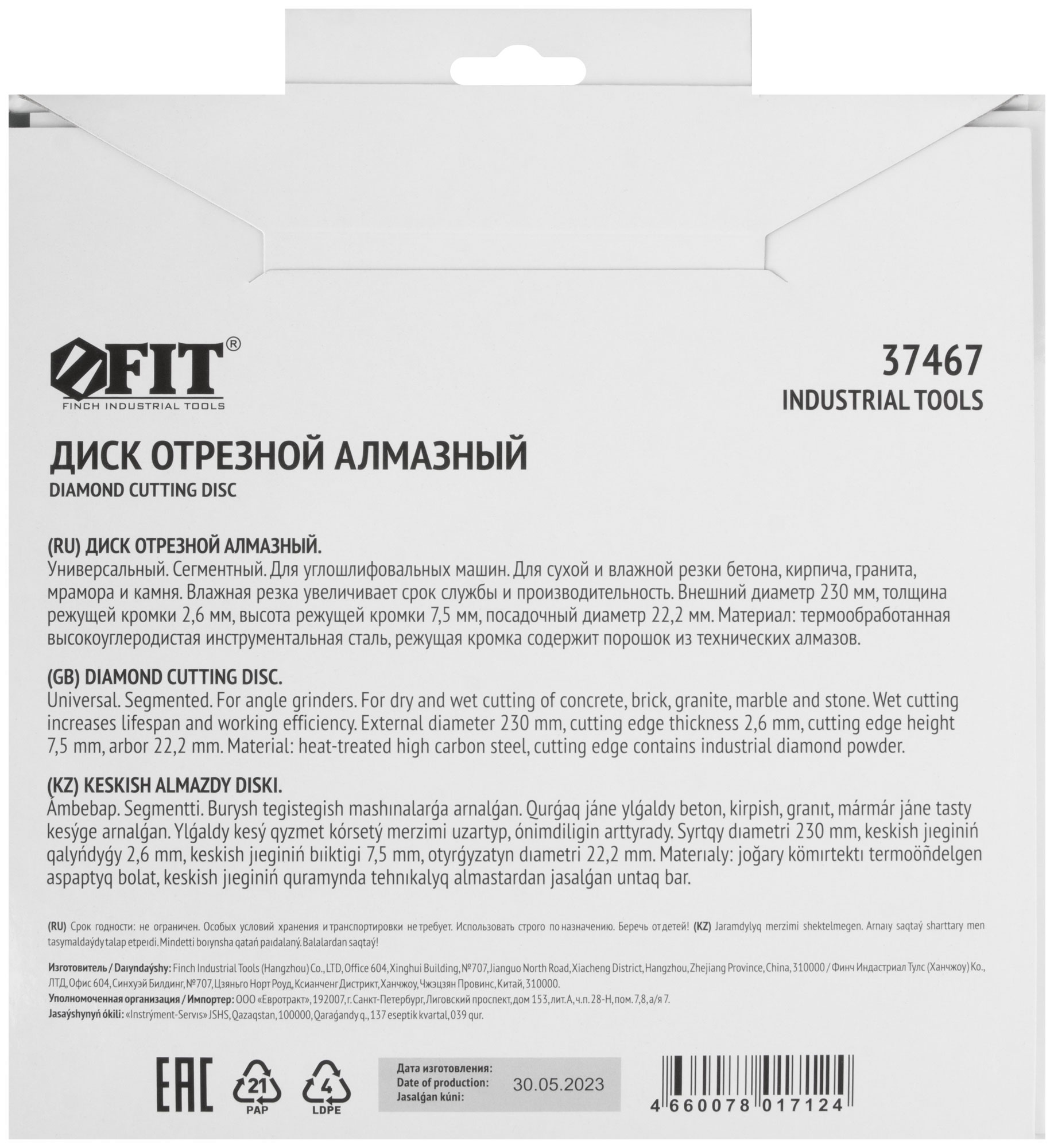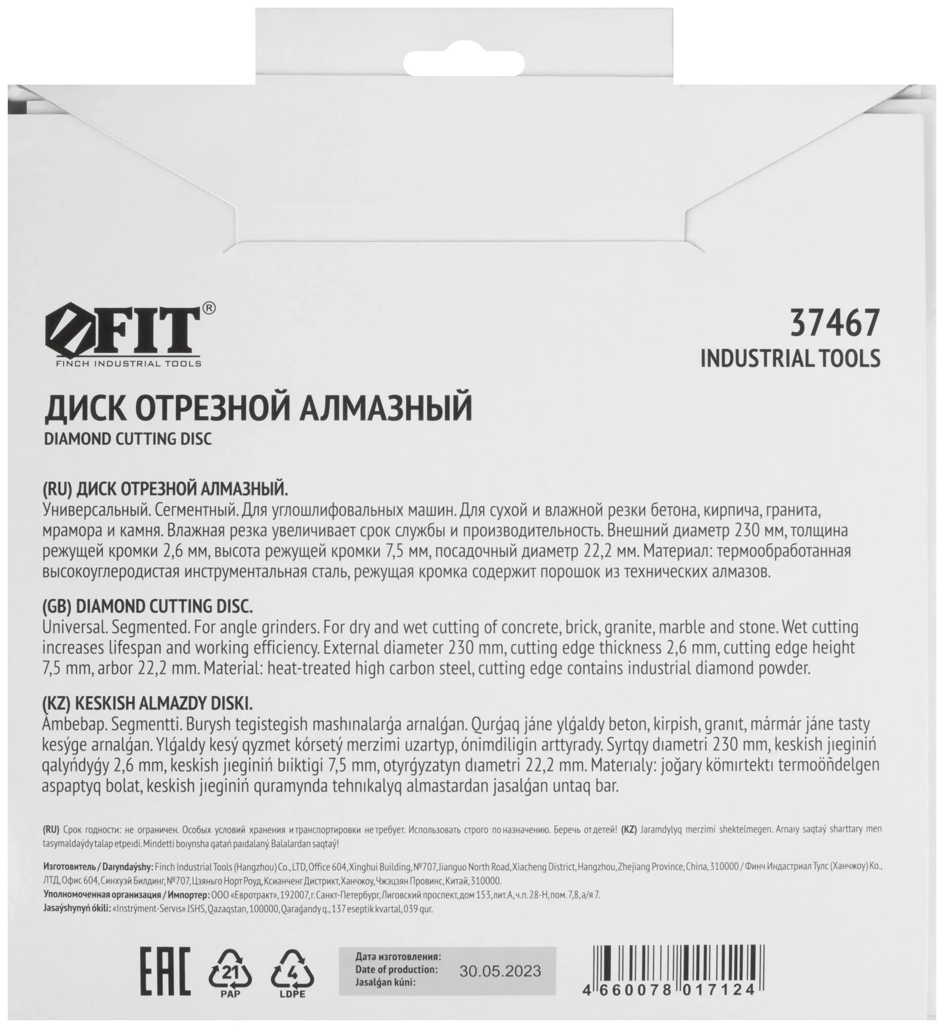 Выберите диск от FIT с кодом 37467, чтобы обеспечить точный и качественный рез в любых условиях.
