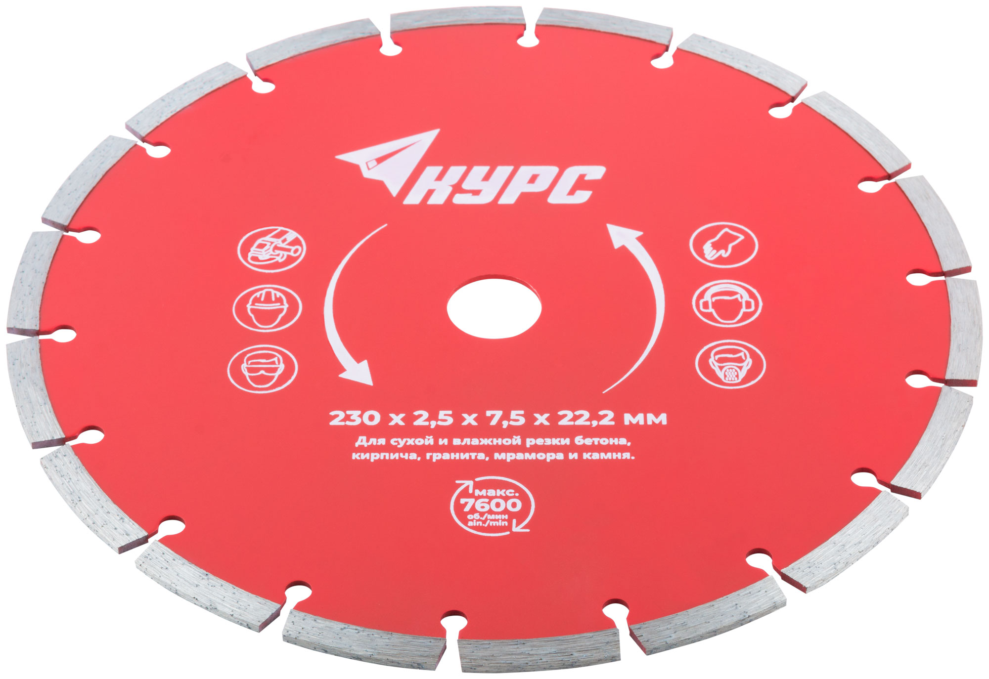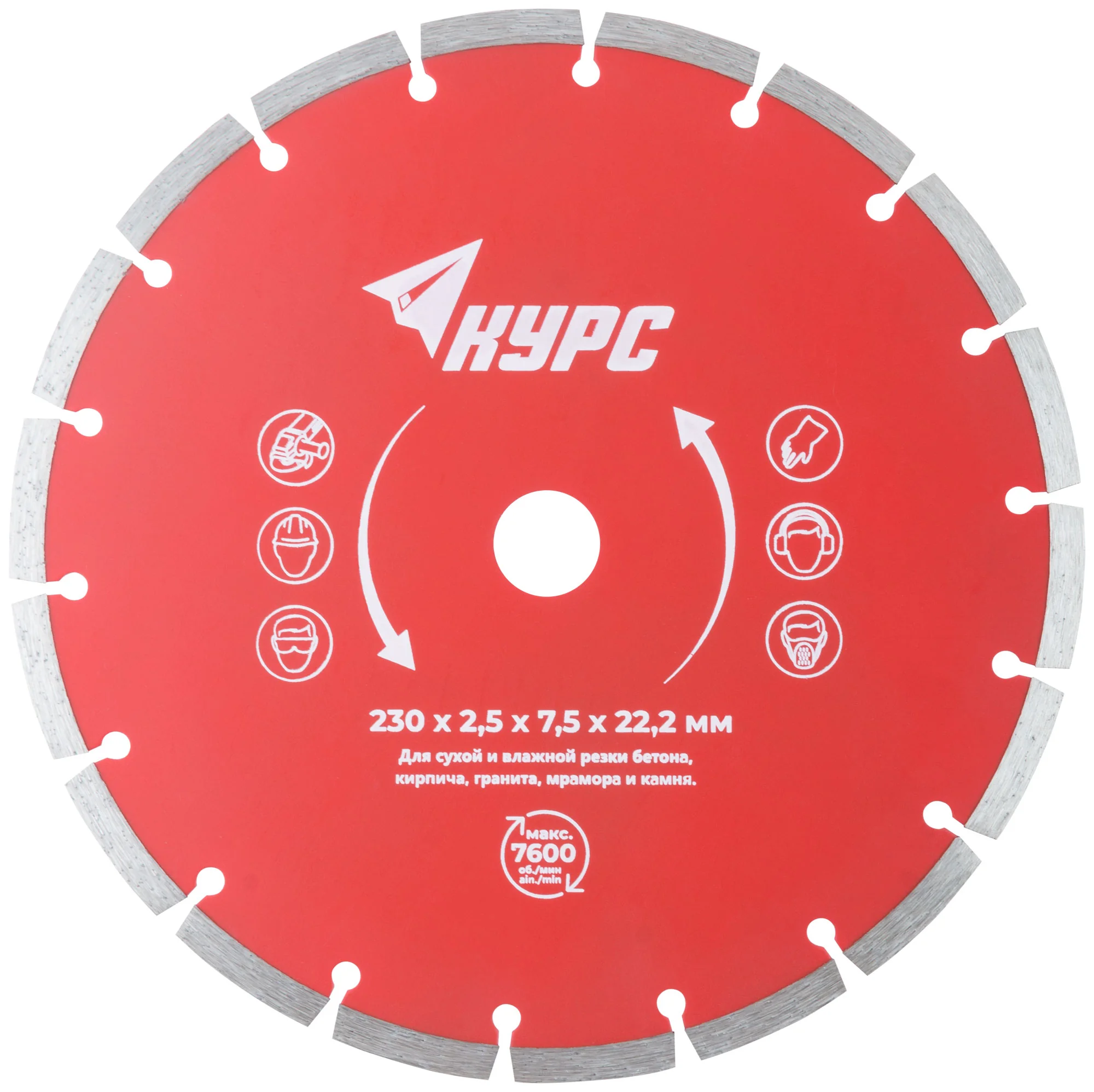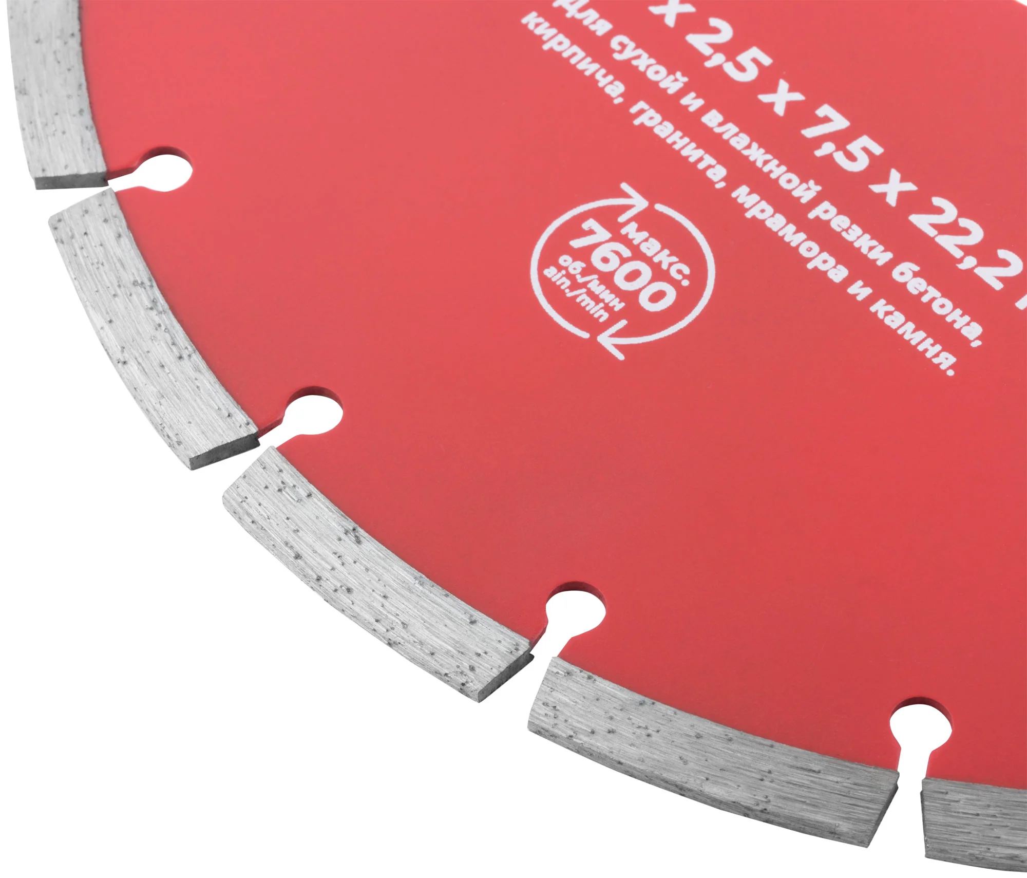 Диск изготовлен из инструментальной стали с алмазной режущей кромкой высотой 7 мм, обеспечивающей долговечность и высокую производительность. Посадочный диаметр составляет 22,2 мм, что позволяет использовать его с большинством стандартных углошлифовальных машин.