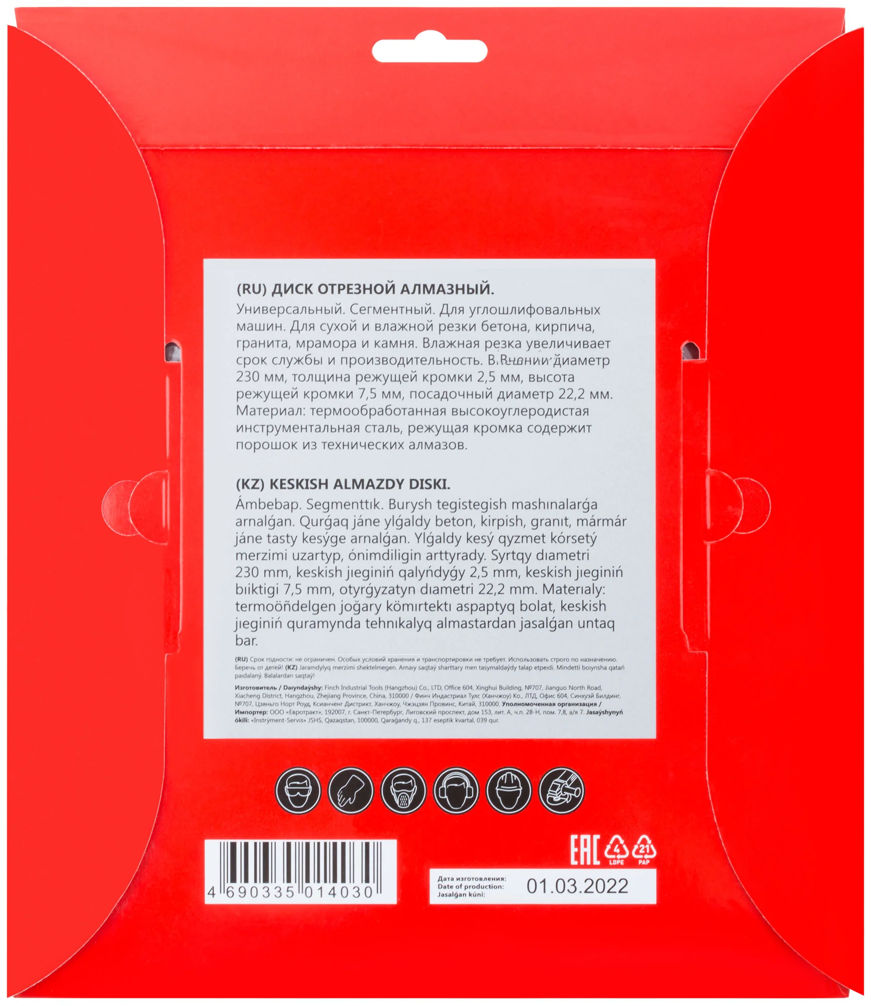 Основные преимущества данного диска — высокая скорость резки и минимальный износ, что позволяет сократить время выполнения работы и повысить экономичность. Он упакован в картонный конверт, что обеспечивает удобное хранение и транспортировку.
