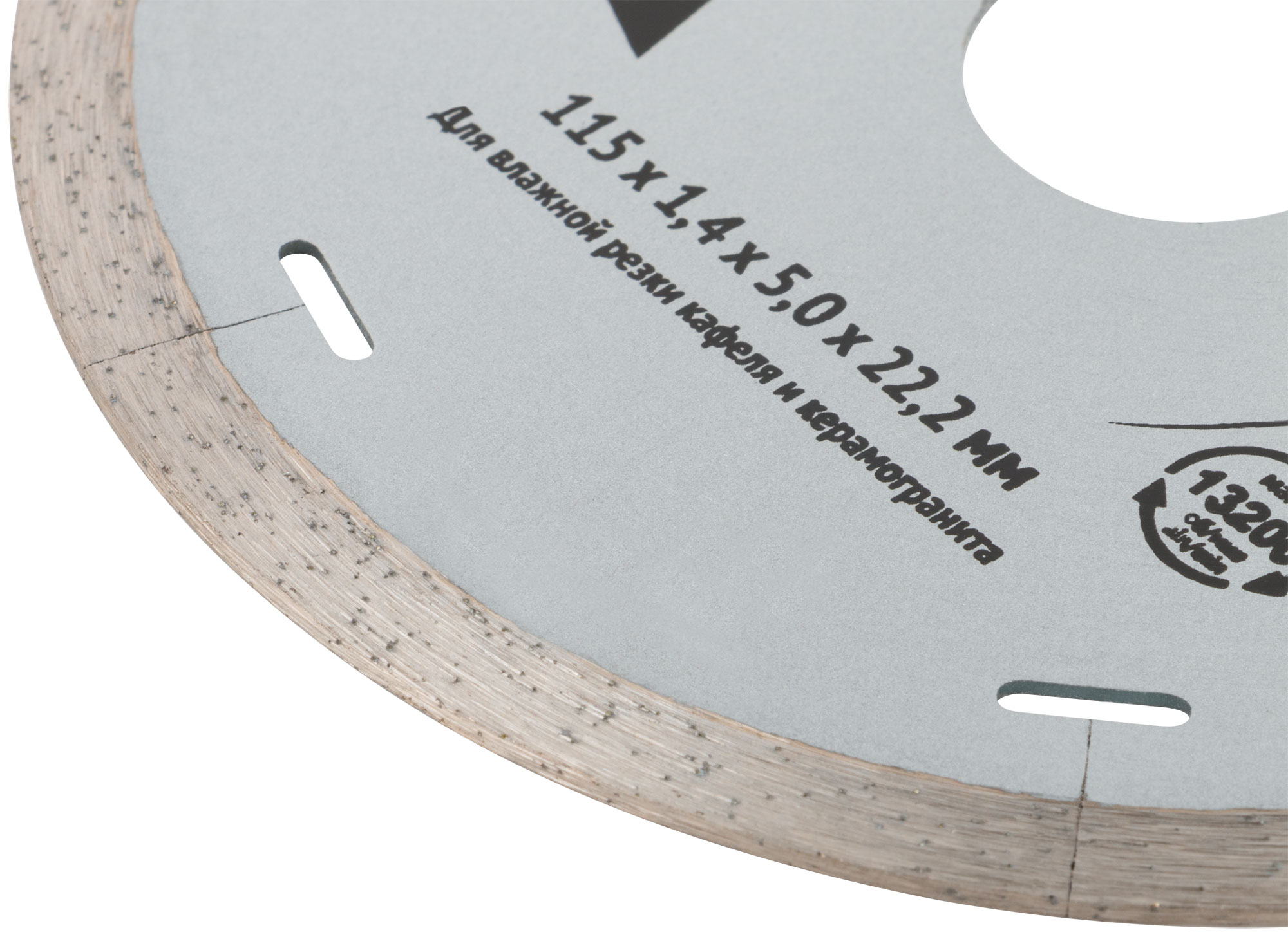 Диск отрезной алмазный сплошной (влажная резка), для работы с кафелем, 115х1,4х5,0х22,2 мм