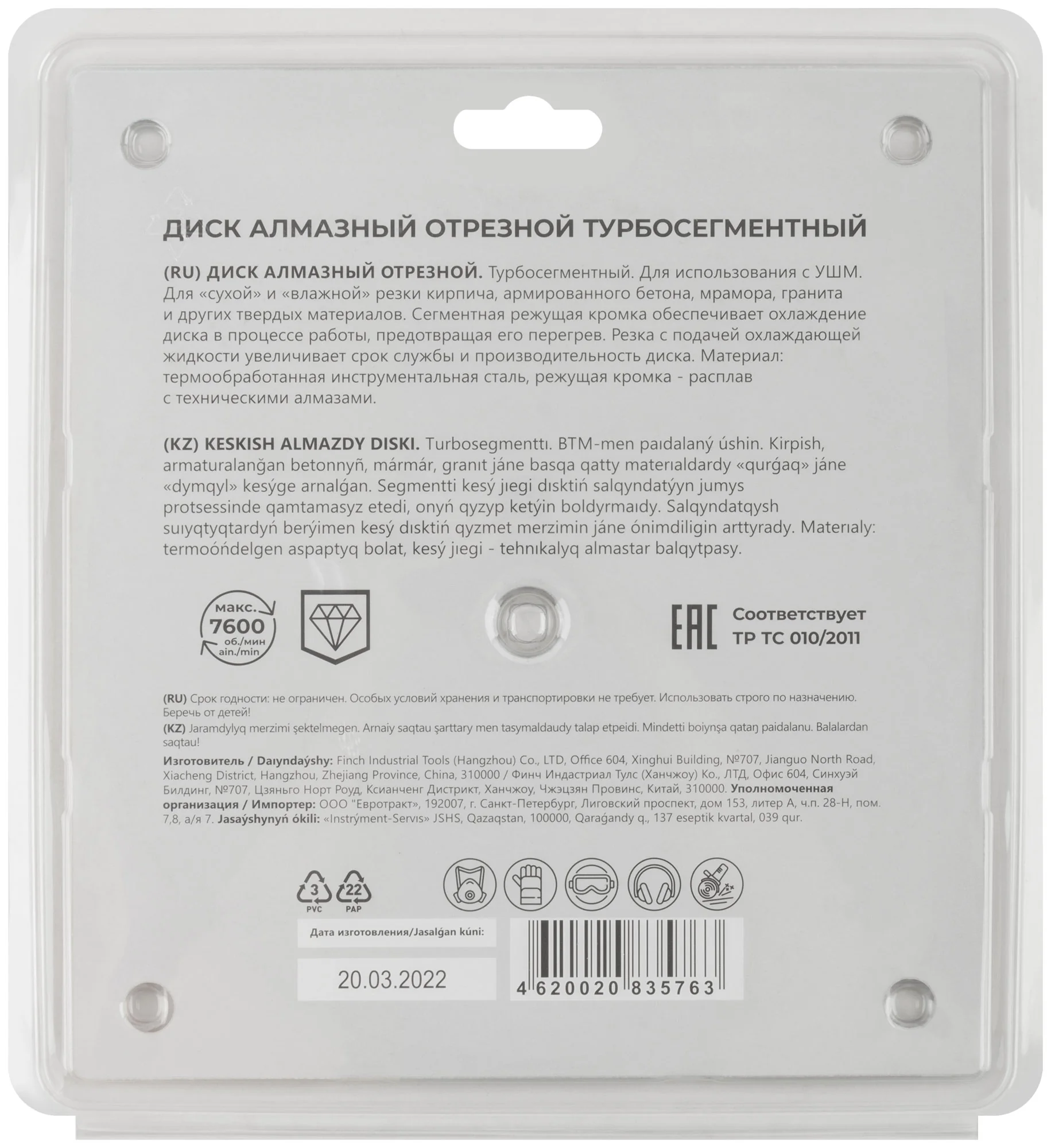 Турбо-сегментная конструкция диска обеспечивает повышенную скорость и качество реза. Это решение для тех, кто ценит надежность и долговечность инструмента.