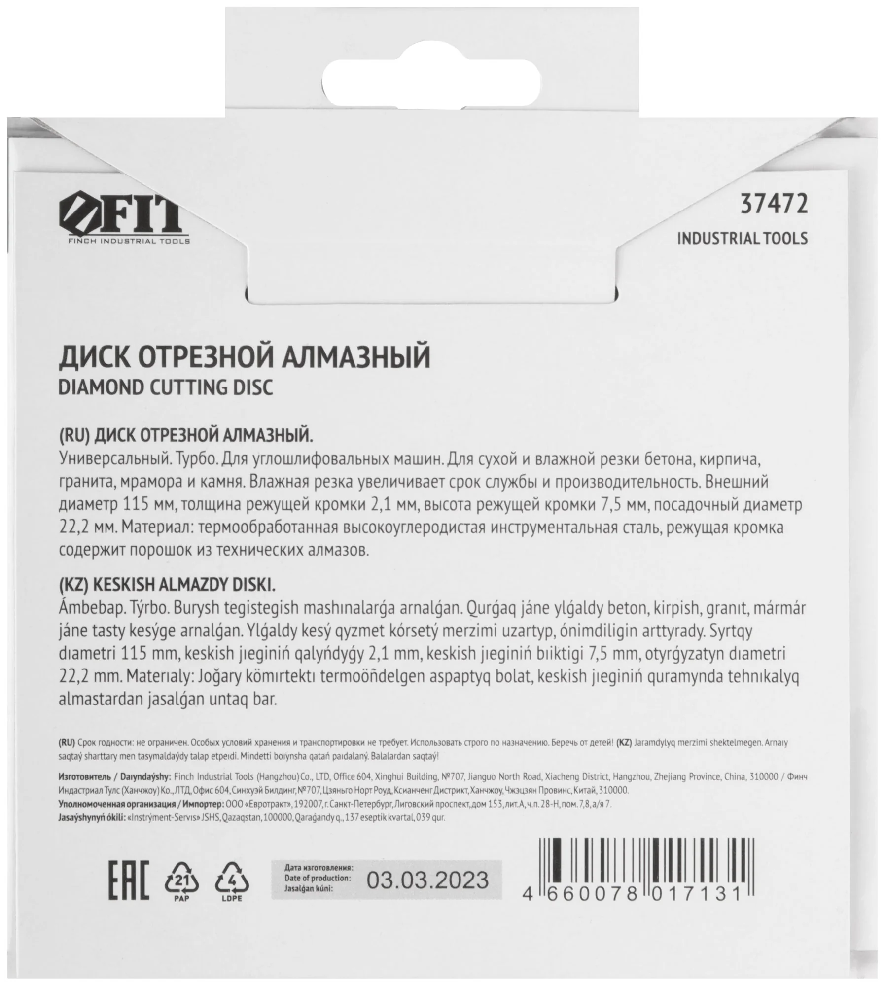 Преимущества использования этого диска — высокая производительность и долговечность. Благодаря алмазной кромке высотой 7,5 мм, диск обеспечивает продолжительный срок службы и устойчивость к износу.