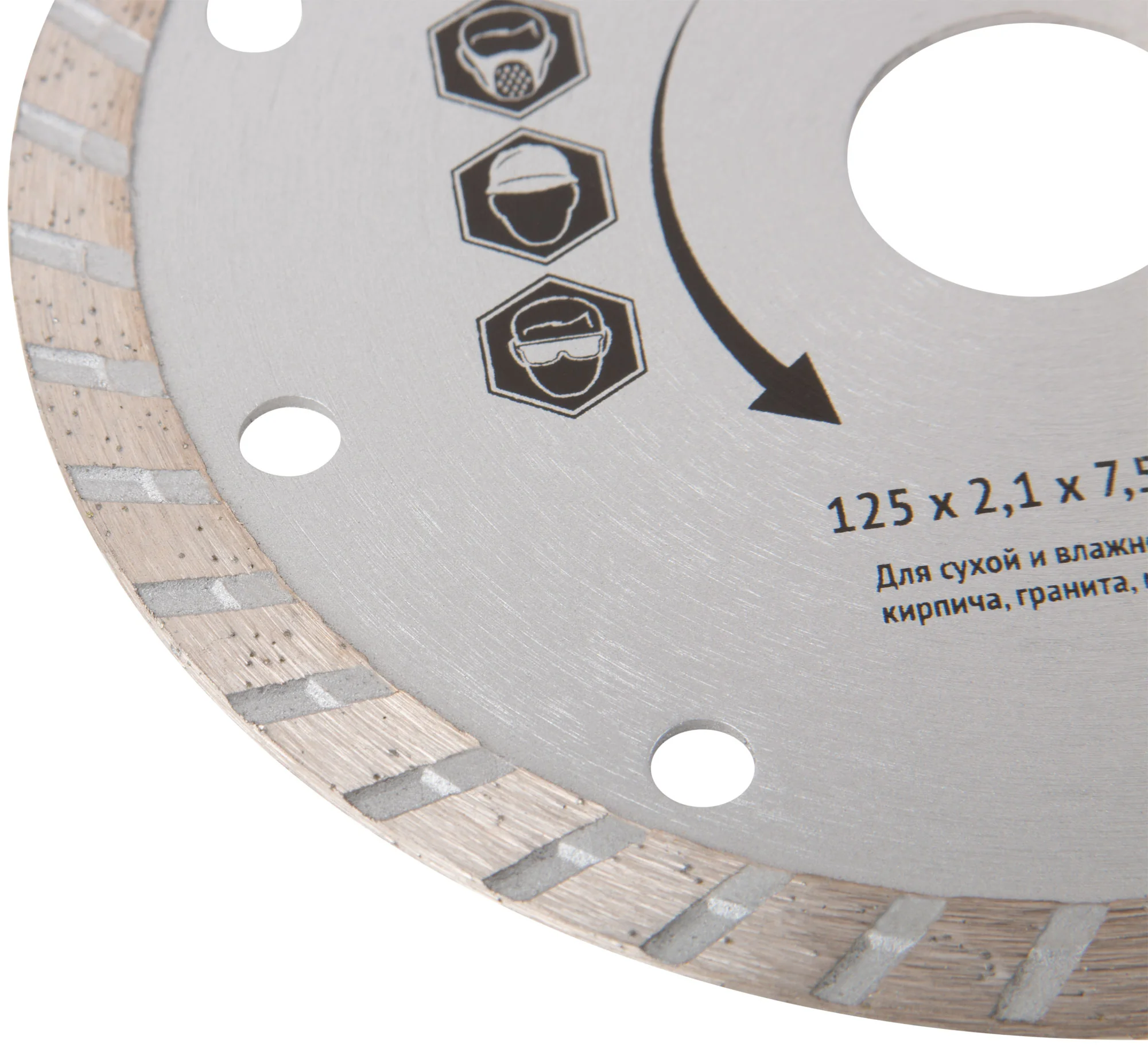 Диск изготовлен из высококачественной инструментальной стали, а режущая кромка содержит порошок из технических алмазов. Высота алмазной режущей кромки составляет 7,5 мм, что обеспечивает долговечность и точность в работе. Посадочный диаметр диска — 22,2 мм.