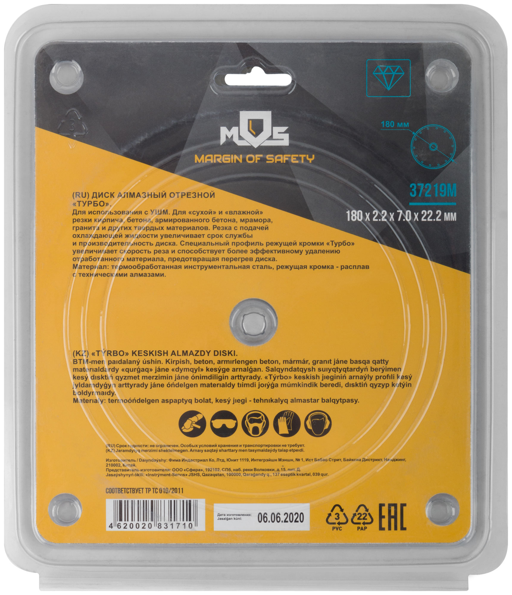 Выберите алмазный диск отрезной "турбо" MOS для повышения эффективности и качества ваших работ. Код товара: 37219М.