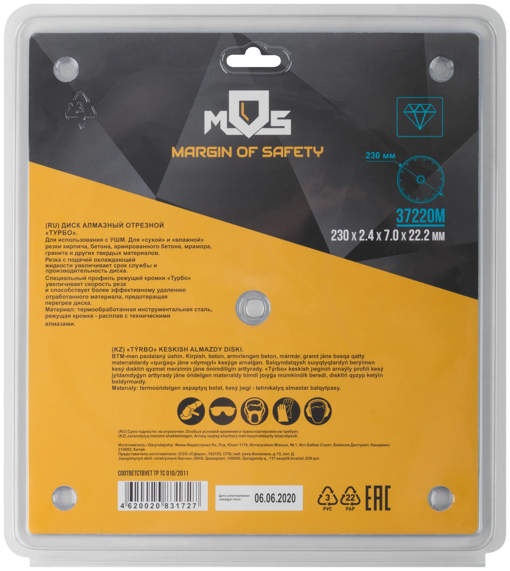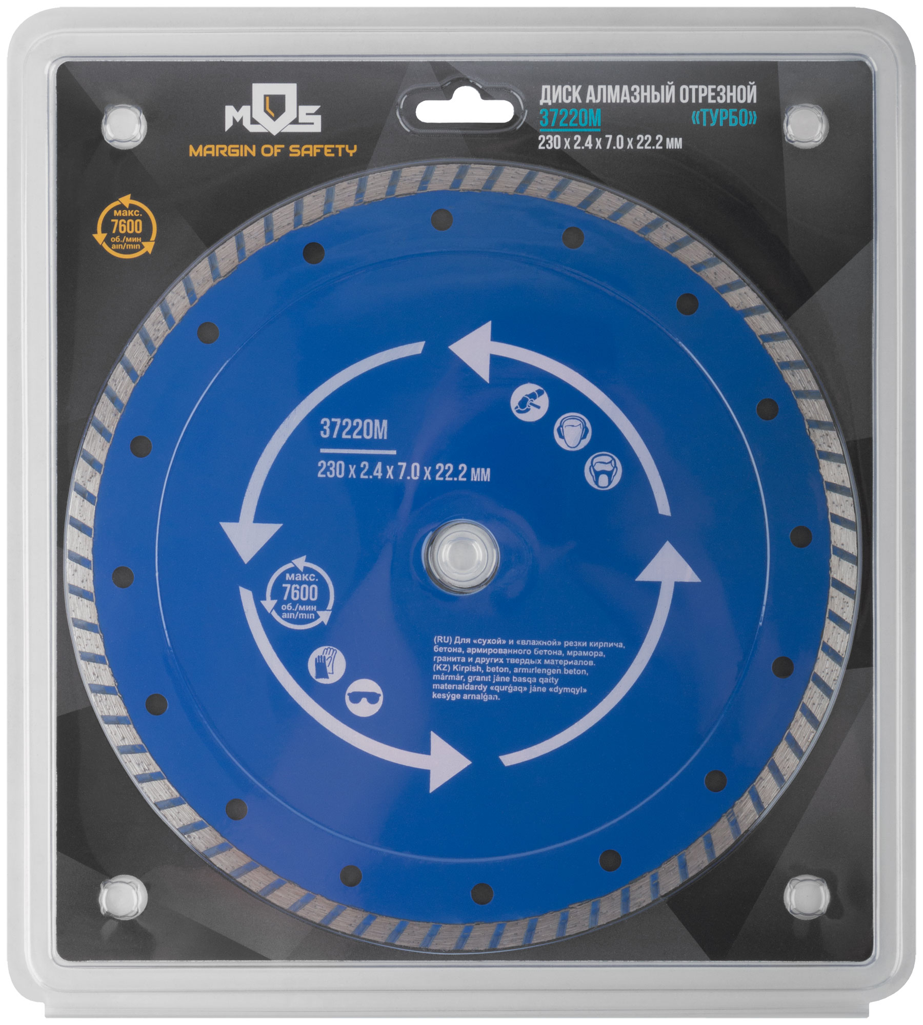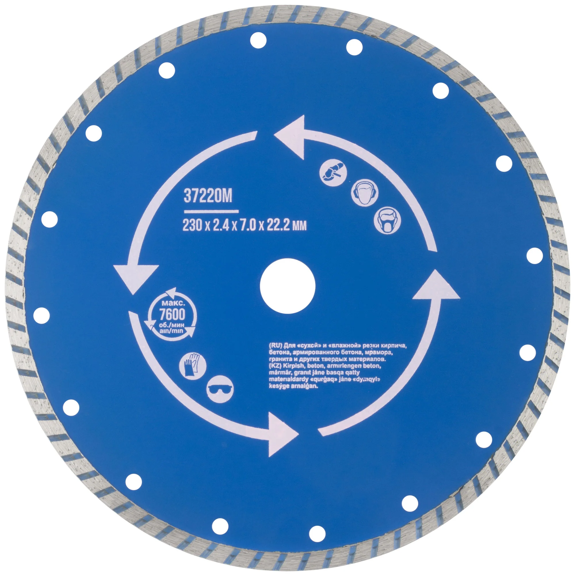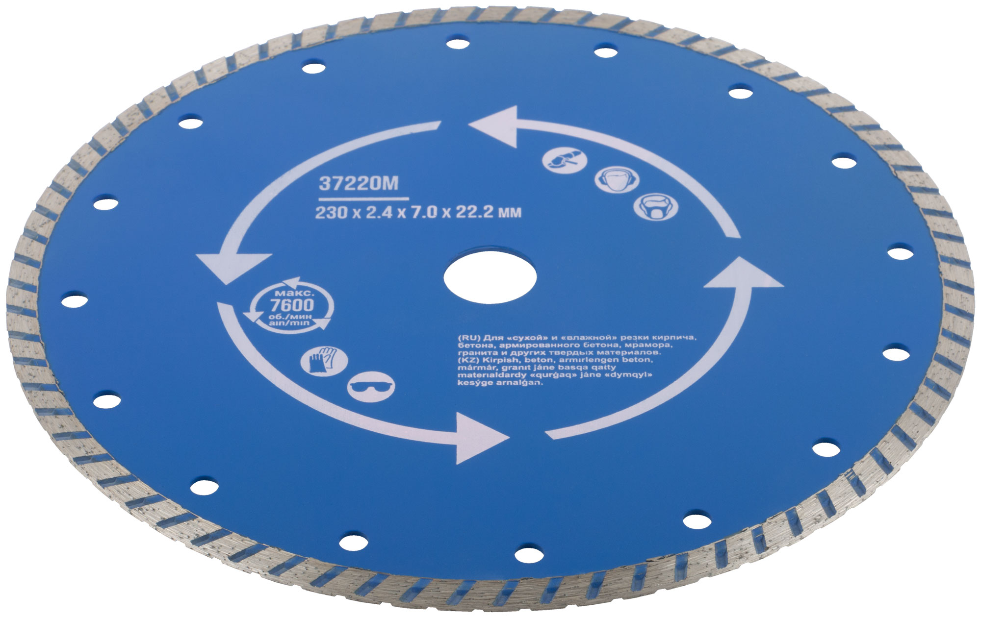 Диск имеет специальный профиль режущей кромки 'Турбо', который увеличивает скорость реза и способствует более эффективному удалению отработанного материала. Это предотвращает перегрев диска, продлевая срок его службы.
