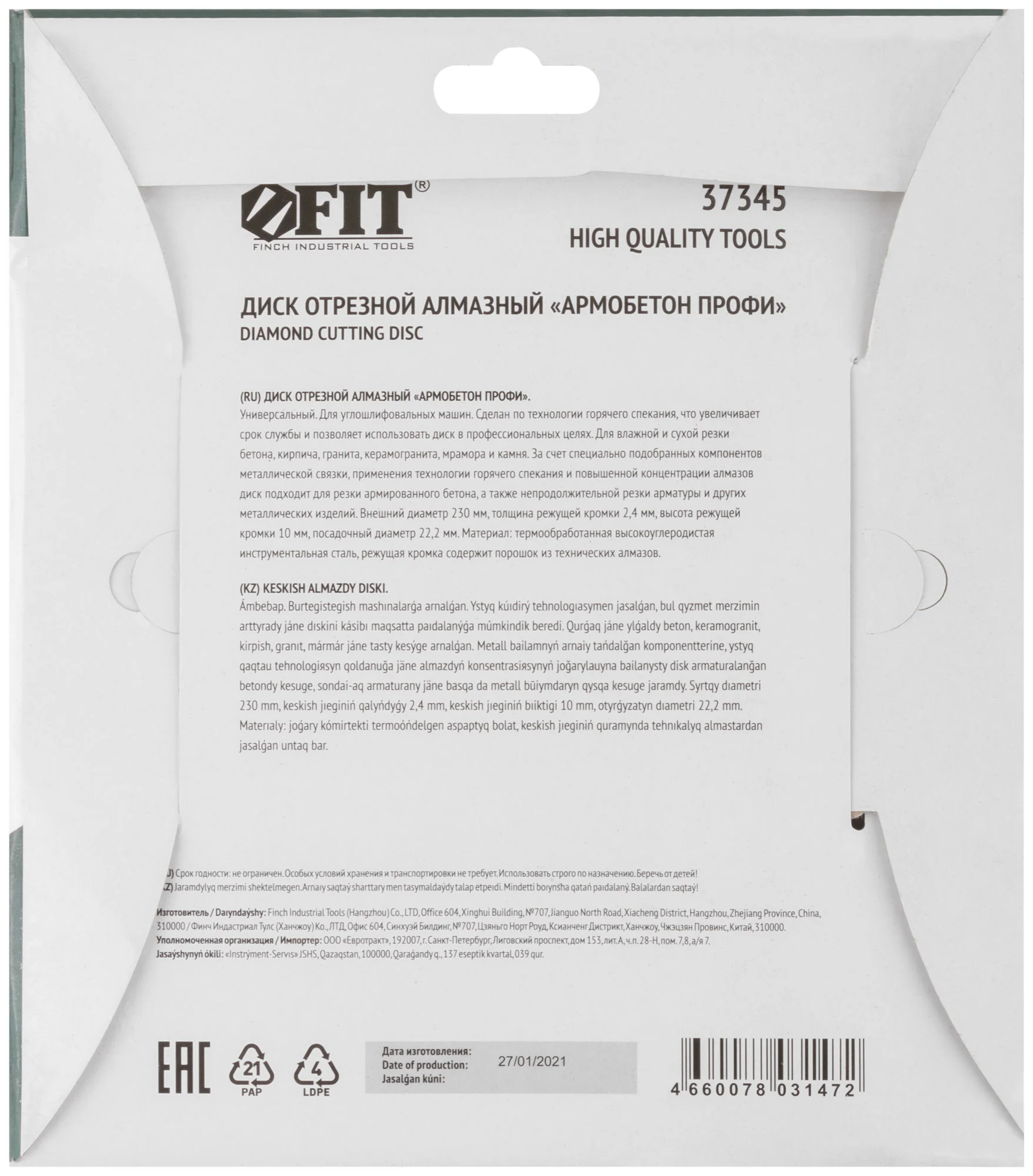 Выберите диск отрезной алмазный "Армобетон Профи" от FIT, чтобы обеспечить эффективную и качественную резку в любых условиях.