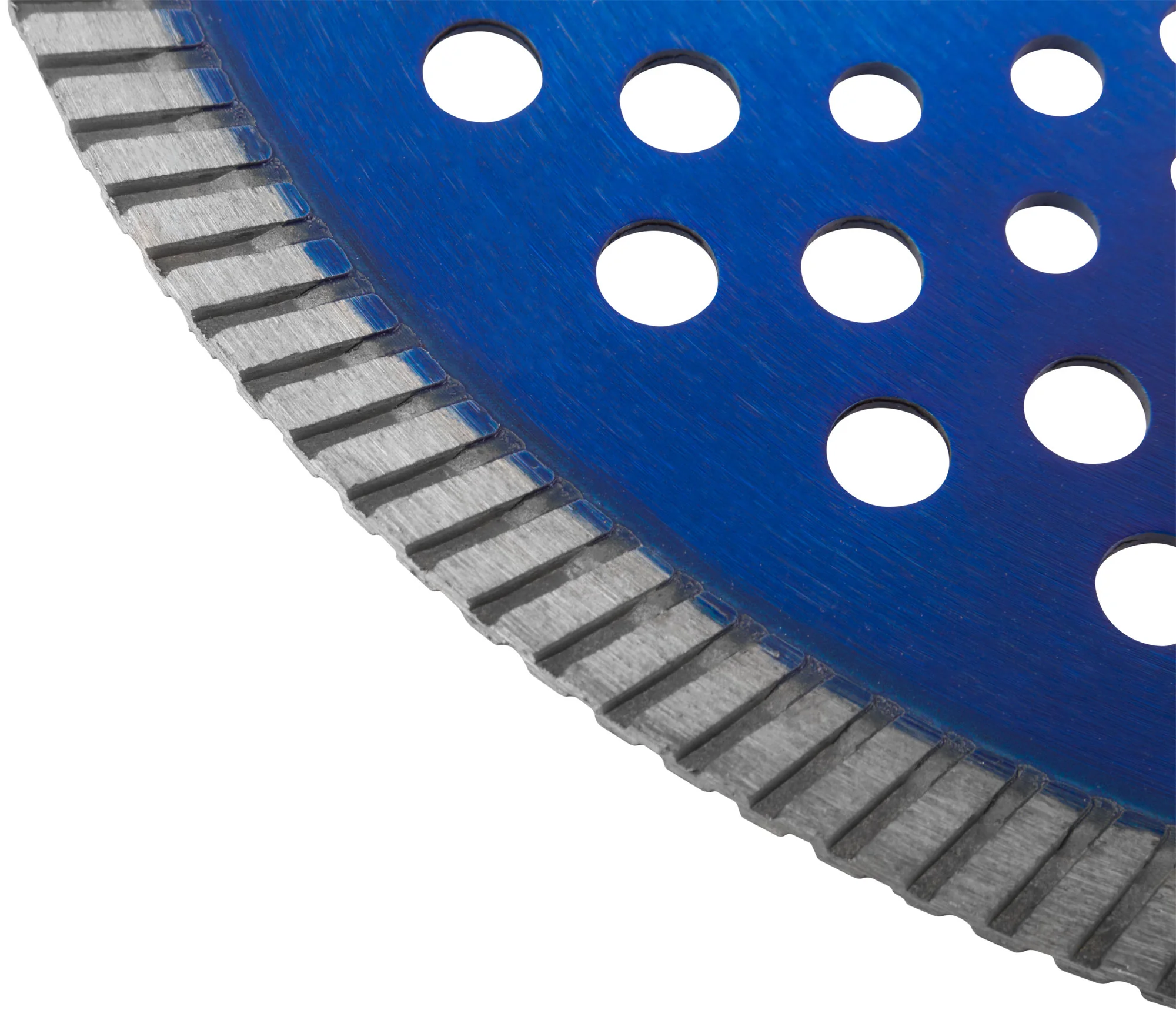 Благодаря специально подобранным компонентам металлической связки и технологии горячего спекания, диск обладает повышенной концентрацией алмазов, что позволяет легко справляться с резкой армированных материалов.