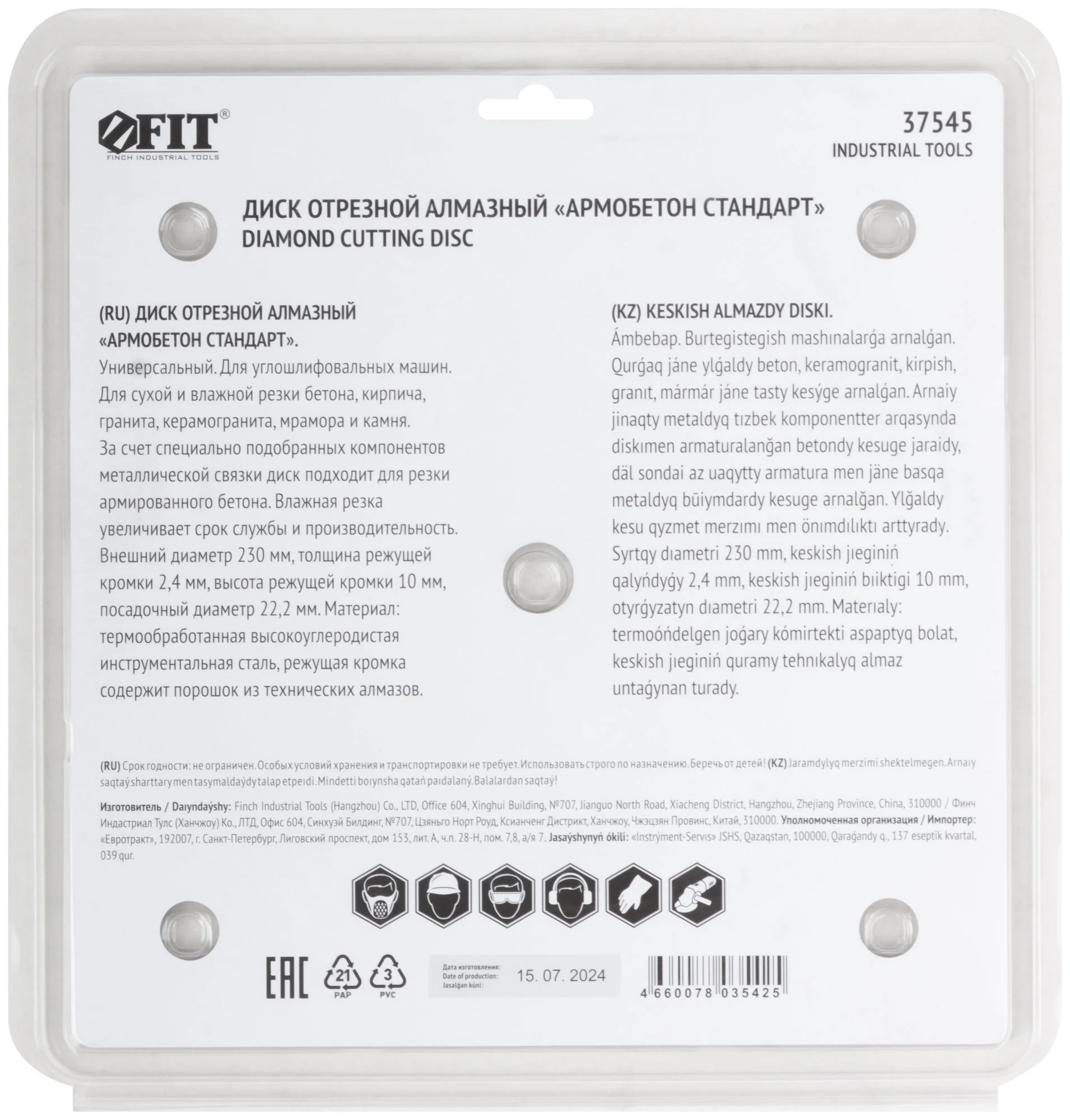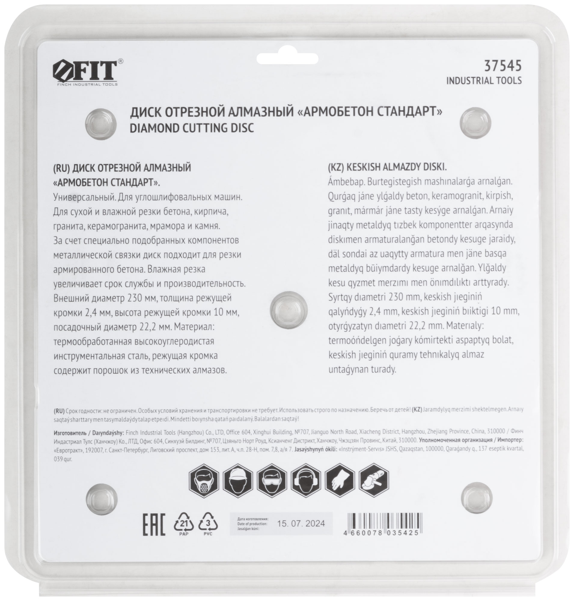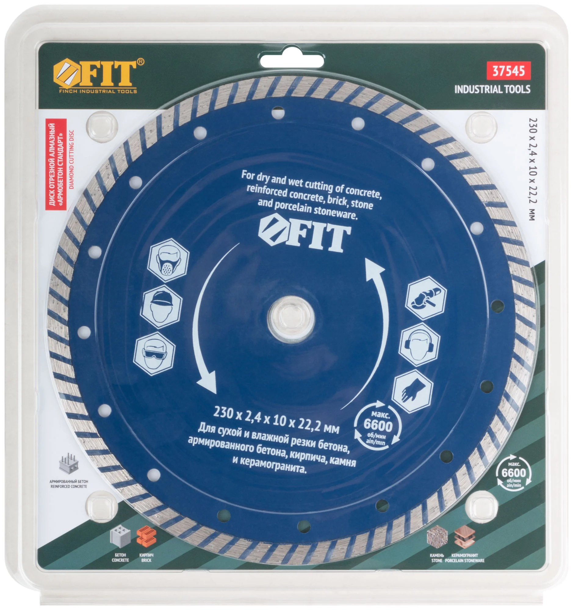 Благодаря специально подобранным компонентам металлической связки, диск демонстрирует отличную производительность при резке армированного бетона, что делает его универсальным решением для различных строительных задач.