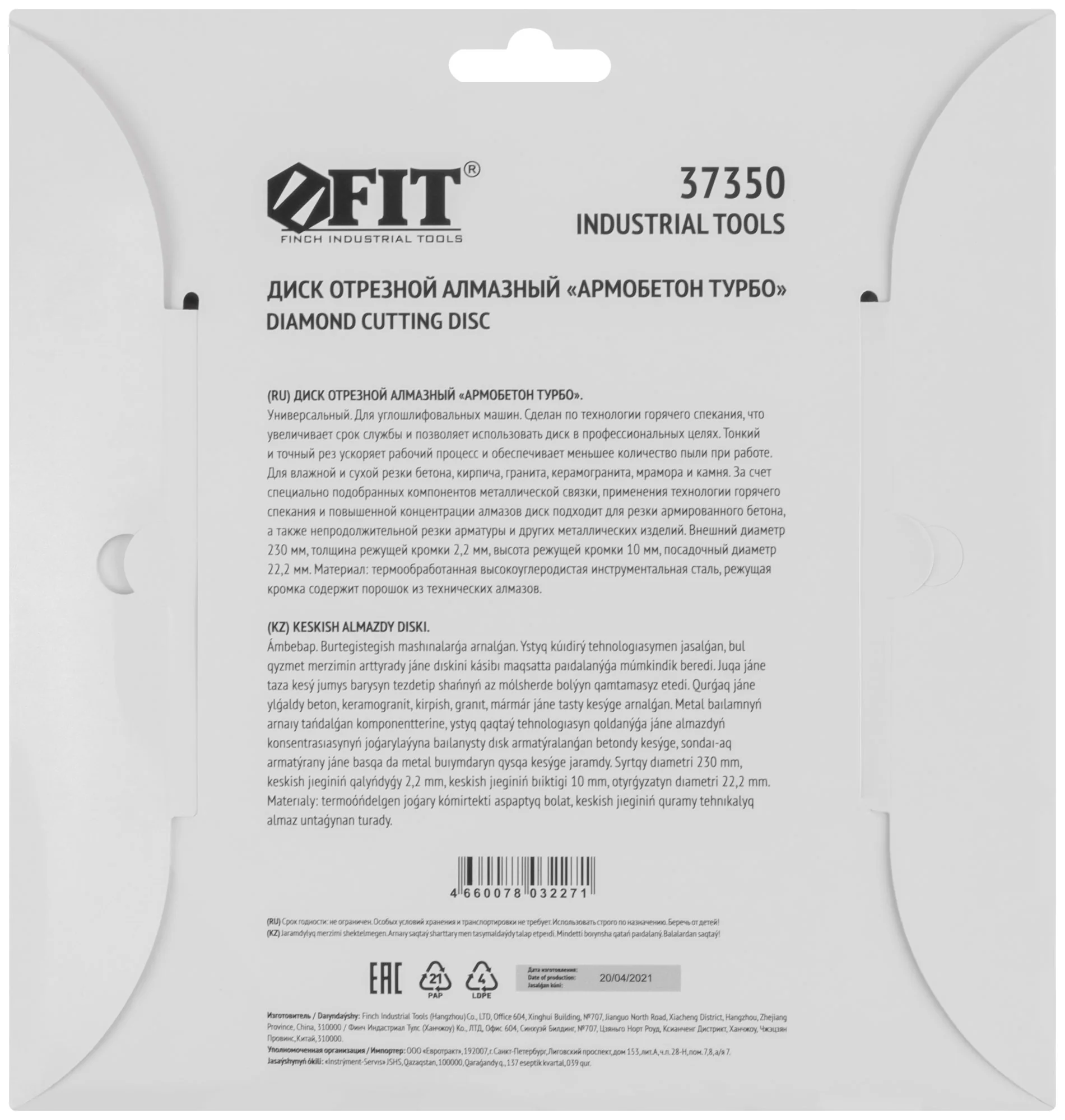 Выберите диск "Армобетон турбо" от FIT для качественной резки твердых материалов и уверенной работы на стройке.
