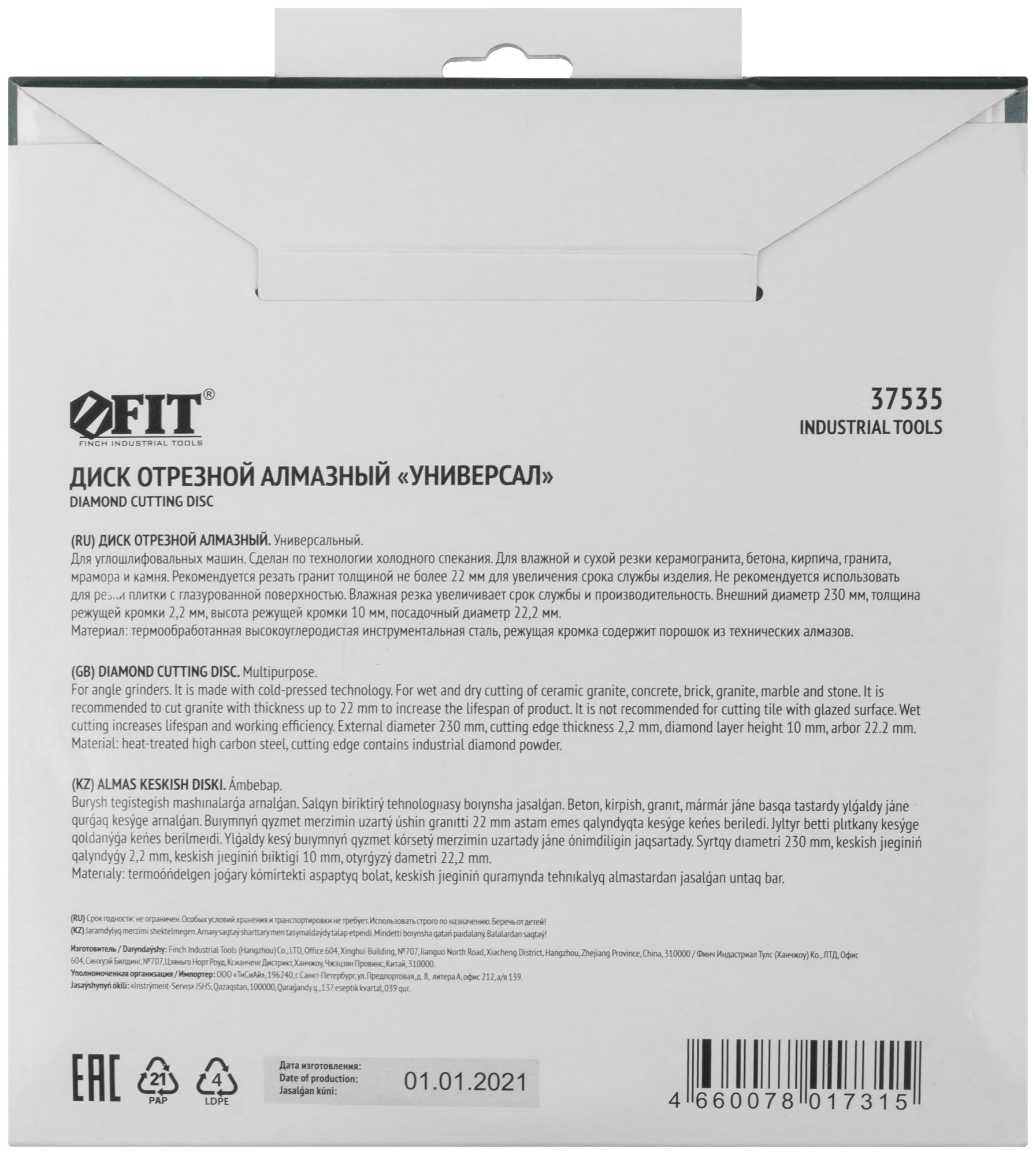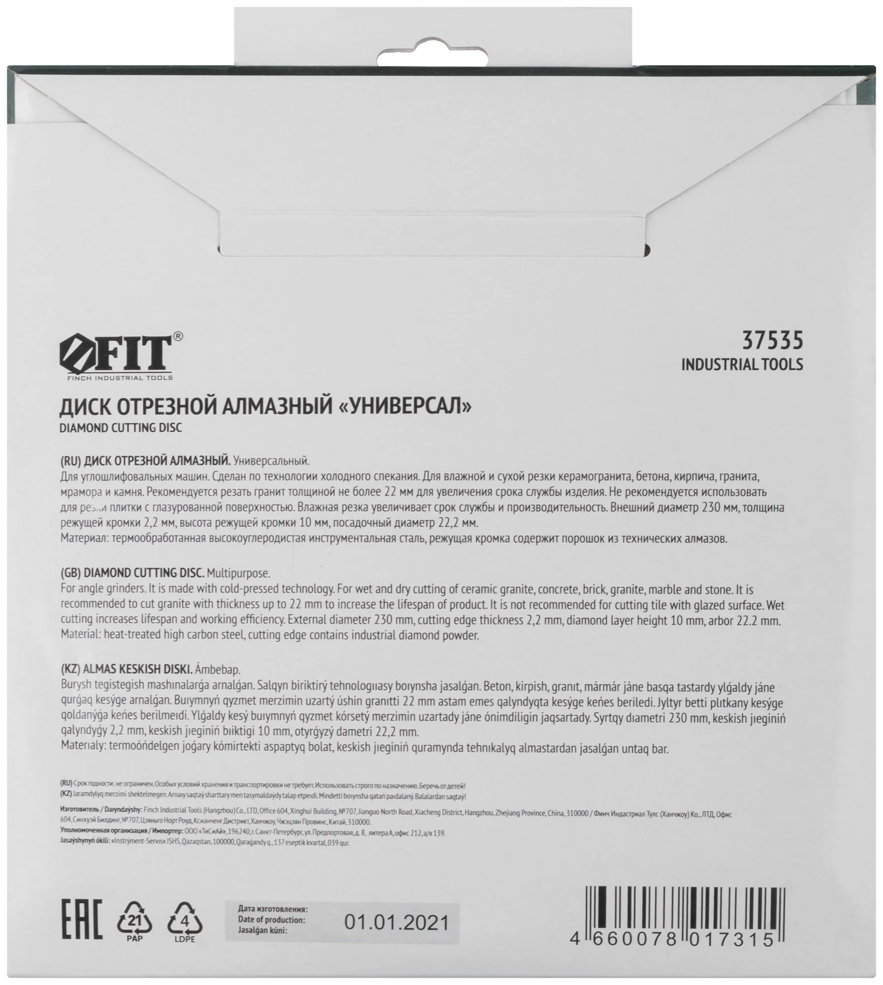 Выберите диск отрезной алмазный FIT 37535, чтобы обеспечить высокую точность и эффективность в ваших строительных и отделочных работах.