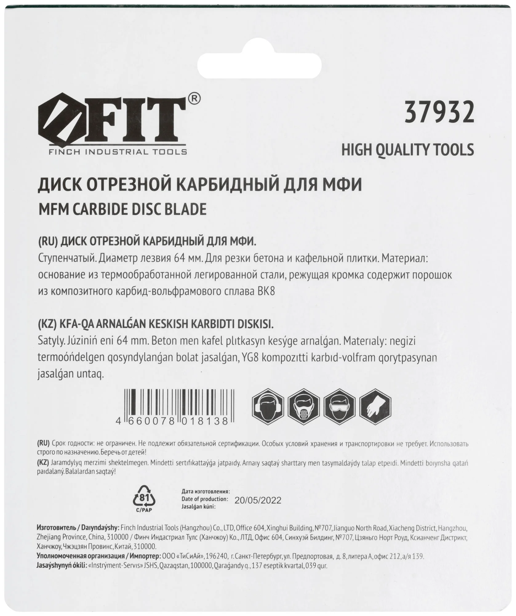 Если вы сталкиваетесь с необходимостью резки бетона или кафельной плитки, карбидный ступенчатый диск от бренда FIT станет вашим надежным помощником. Он позволяет выполнять точные и чистые резы, что особенно важно при отделочных работах и ремонте.