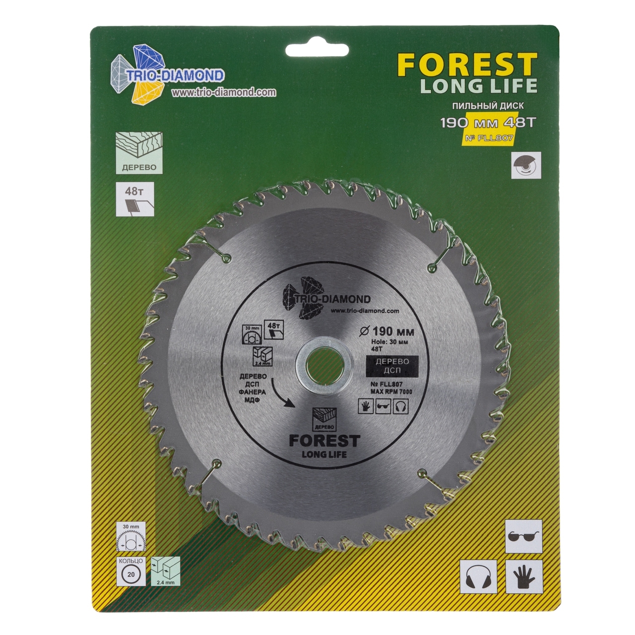 Пильный диск серии Forest Long Life от TRIO-DIAMOND рассчитан на максимальные обороты до 7 000 RPM, что позволяет ему справляться с интенсивными нагрузками без потери качества реза. Толщина пропила всего 2.4 мм позволяет минимизировать потерю материала.